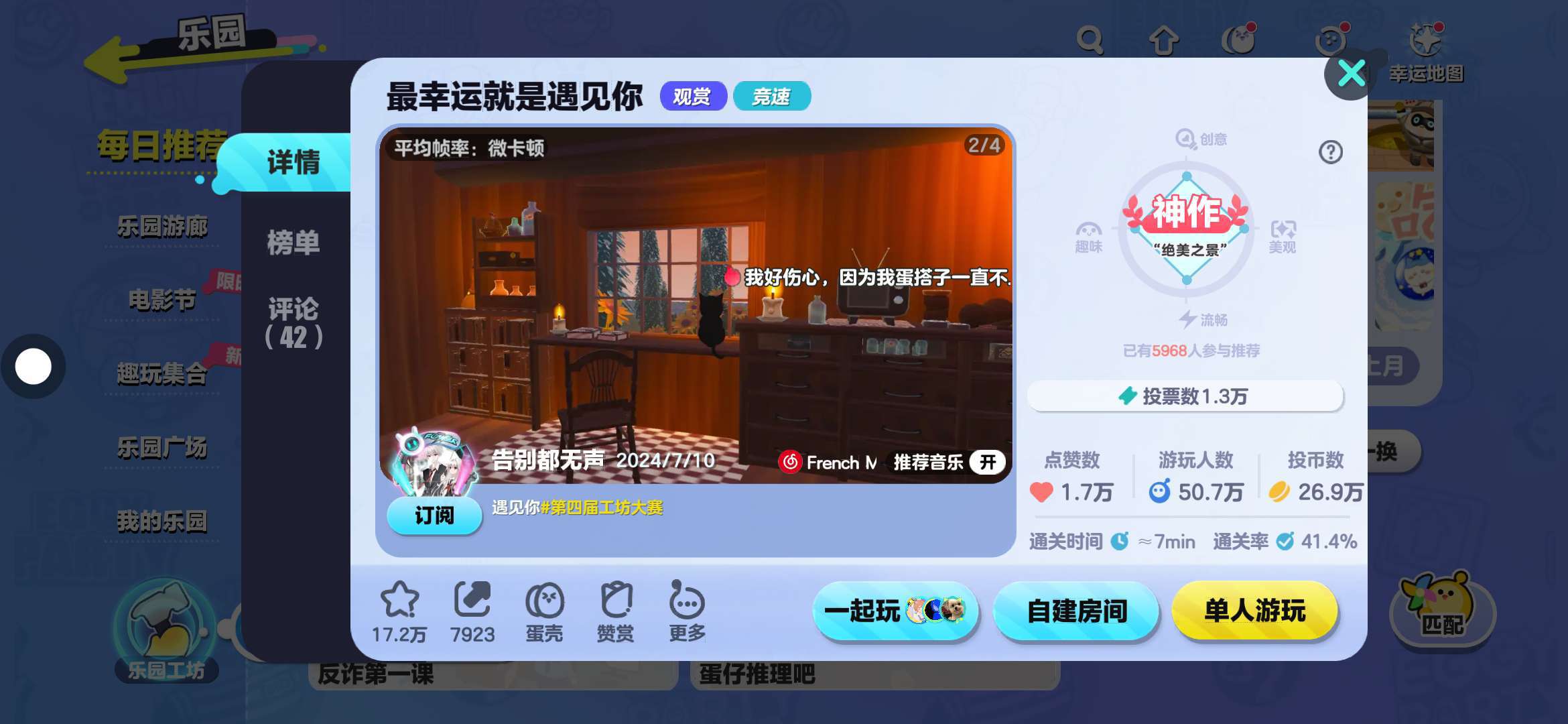 地图介绍:一个超级浪漫的地图,我也是非常的喜欢打卡地图,而且没有难度,然后呢,这个地图的风格我也很喜欢,最后那有烟花,真的超级喜欢看那种组成一个爱心形的烟花,因为我觉得真的很浪漫(›´ω`‹)我爱你不是两三天的事 而是日日夜夜的思念 长长久久的爱慕之情