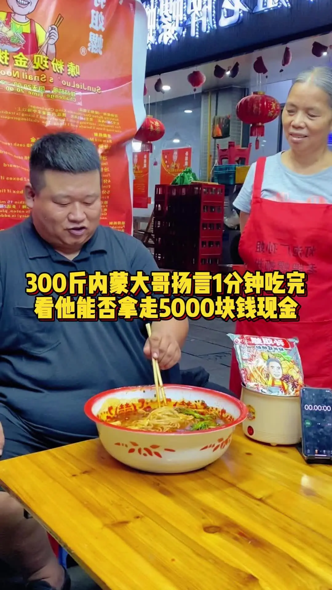 回复300斤内蒙大哥放话一分钟吃完,拿走阿姨5000元?#美食 #螺蛳粉 #吃货