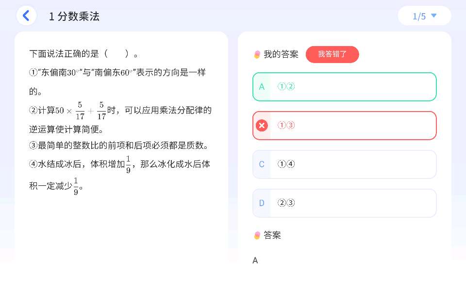 五个错四个【因为我才刚学六年级,勿喷】