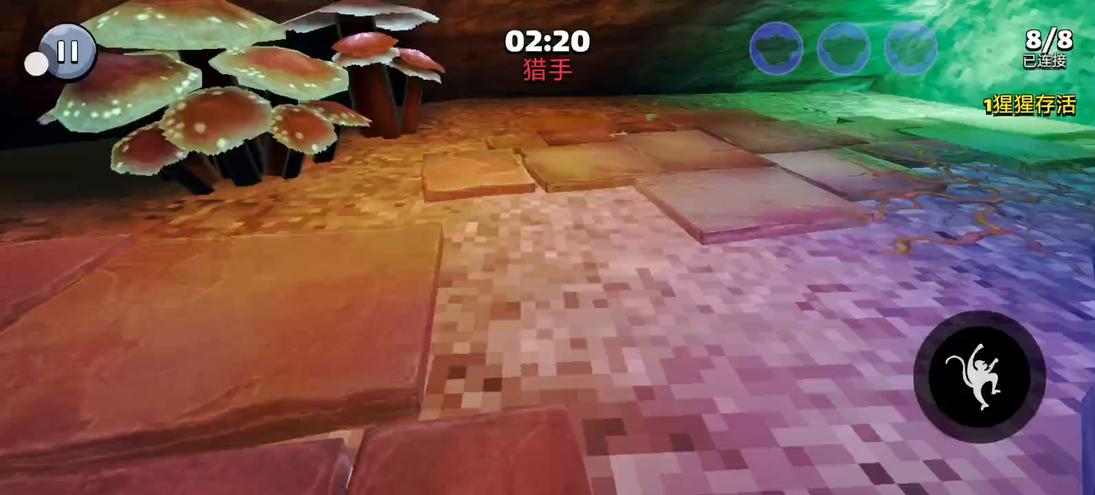 您可以扮演猎人大猩猩或奔跑猴子。在密室躲藏和寻找,尽可能多地生存。如果您是大猩猩猎人,则必须在 3 分钟内寻找并抓住所有其他奔跑者。如果您是奔跑者,则必须在不被抓住的情况下生存隐藏 3 分钟,如果您被抓住,则成为大猩猩猎人。