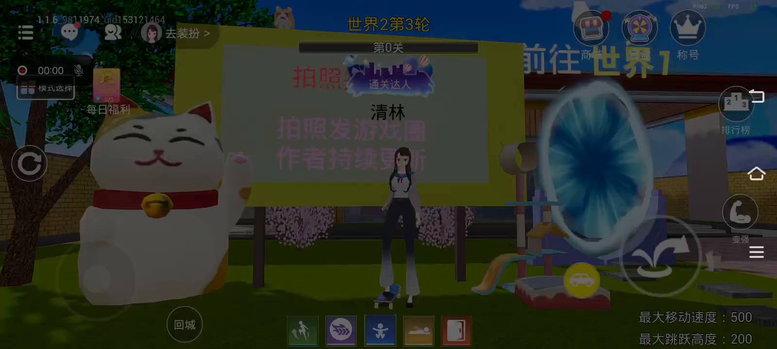 竞速模式来袭!超快速度!畅快跑酷! 争夺冠军登上天梯榜首!超多金币奖励! 樱校粉丝自制关卡: 放假了! 谁也拦不住我~ 为了能够享受更多的假期时光 你能否通过重重障碍逃离校园成功回家? 快叫上你的小伙伴们,一起逃离樱花校园吧! 记得打卡拍照发布游戏圈,给作者点鼓励~
