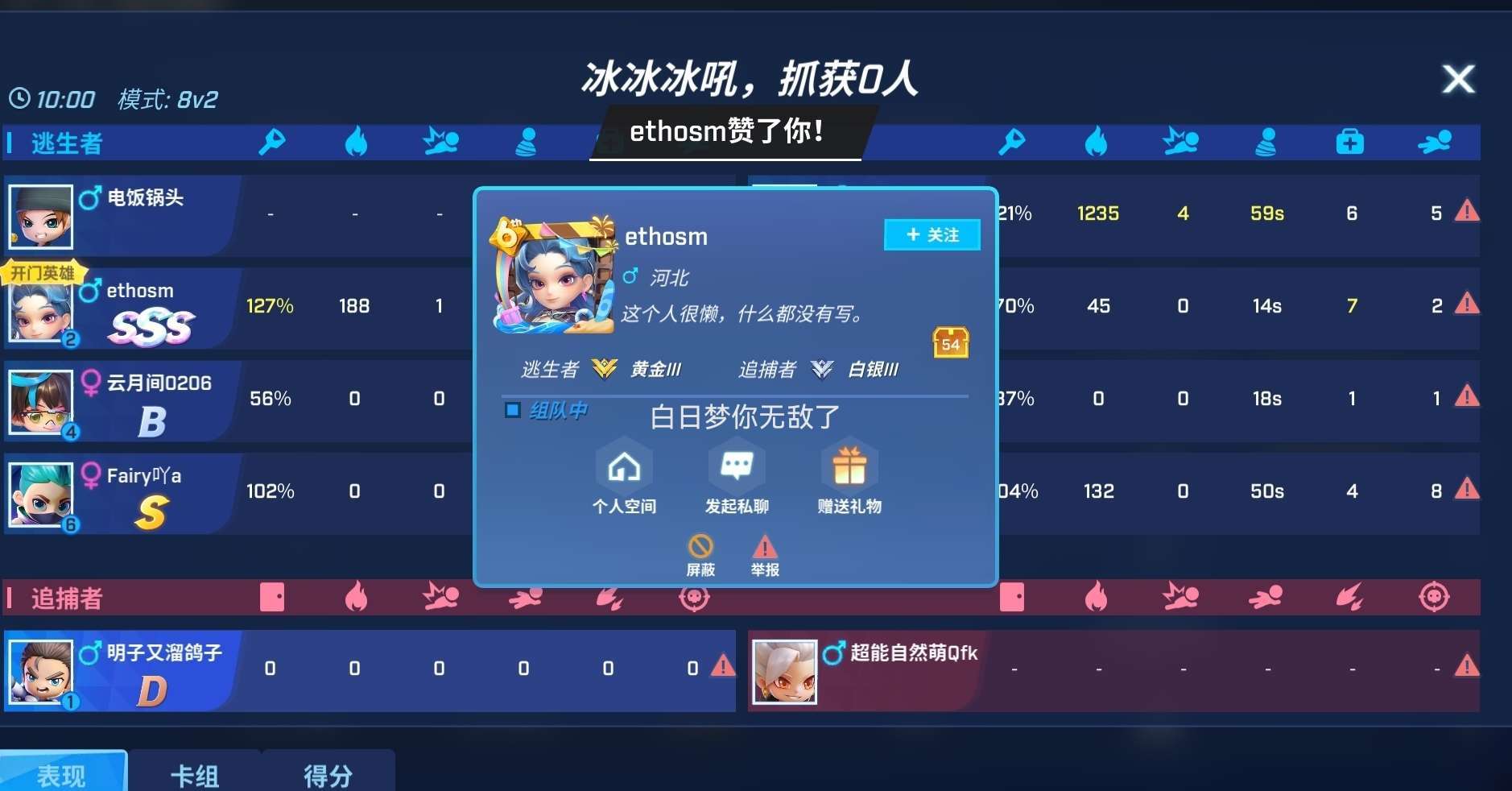 白日梦你无敌了,你可以重开了,bug比外挂还多。首先我是双王,其次我不叫明子又溜鸽子,最重要的是,他一个黄金怎么匹配到我的,这种无视段位拉人我好友也遇到了,白日梦你可以重开了。
