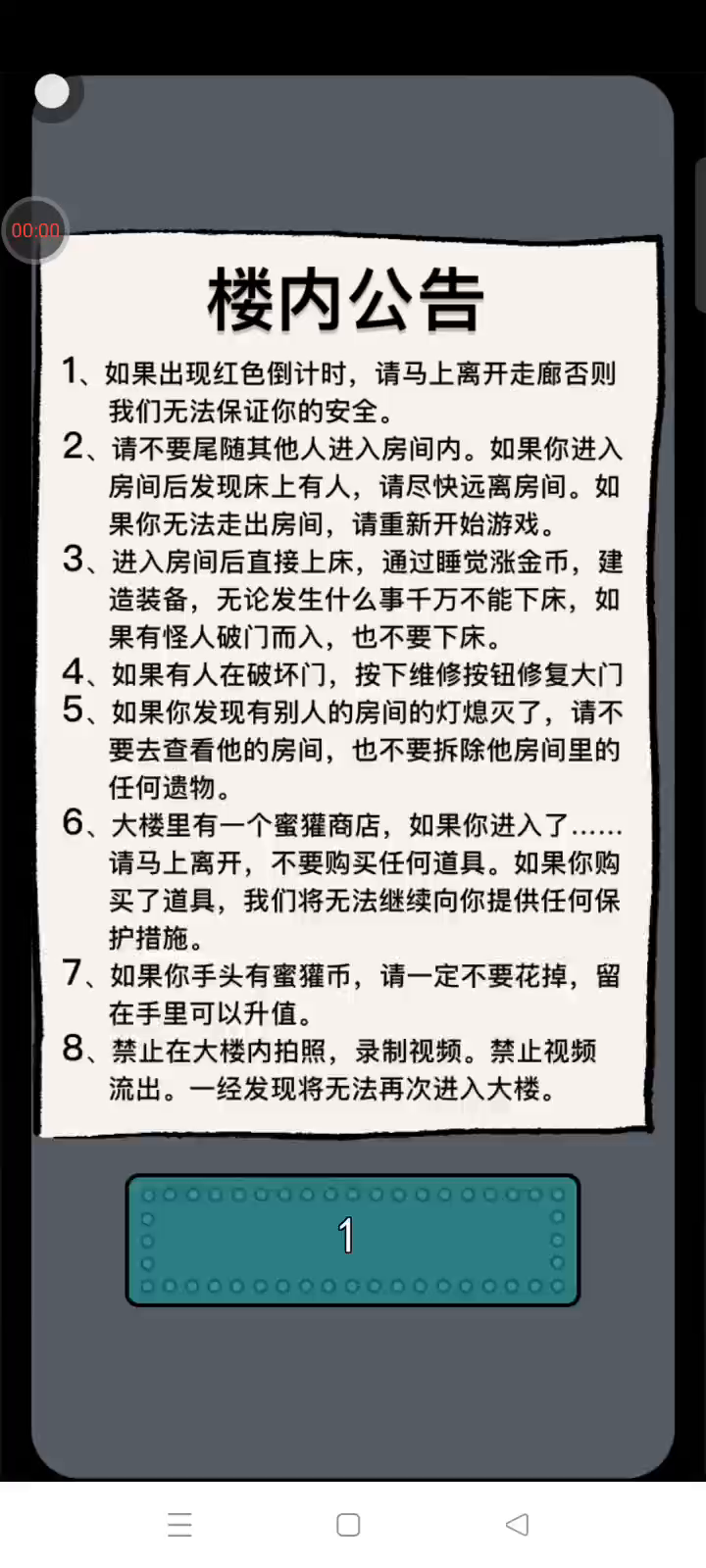 《猛鬼宿舍》是一款2D塔防小游戏。游戏中玩家需躲避猛鬼的追捕,寻找适合自己的宿舍躲避,并发展经济建造炮台,抵御猛鬼。游戏中玩家只可以在房间中的空地板上进行建造,玩家点击空地板后,出现建筑菜单。游戏中玩家需要根据自己当前的经济选择性建造建筑,发现一条符合自己发展的道路。玩家需要将鬼击败或者抵御至天亮方可获胜,反之鬼抓到玩家则玩家失败。