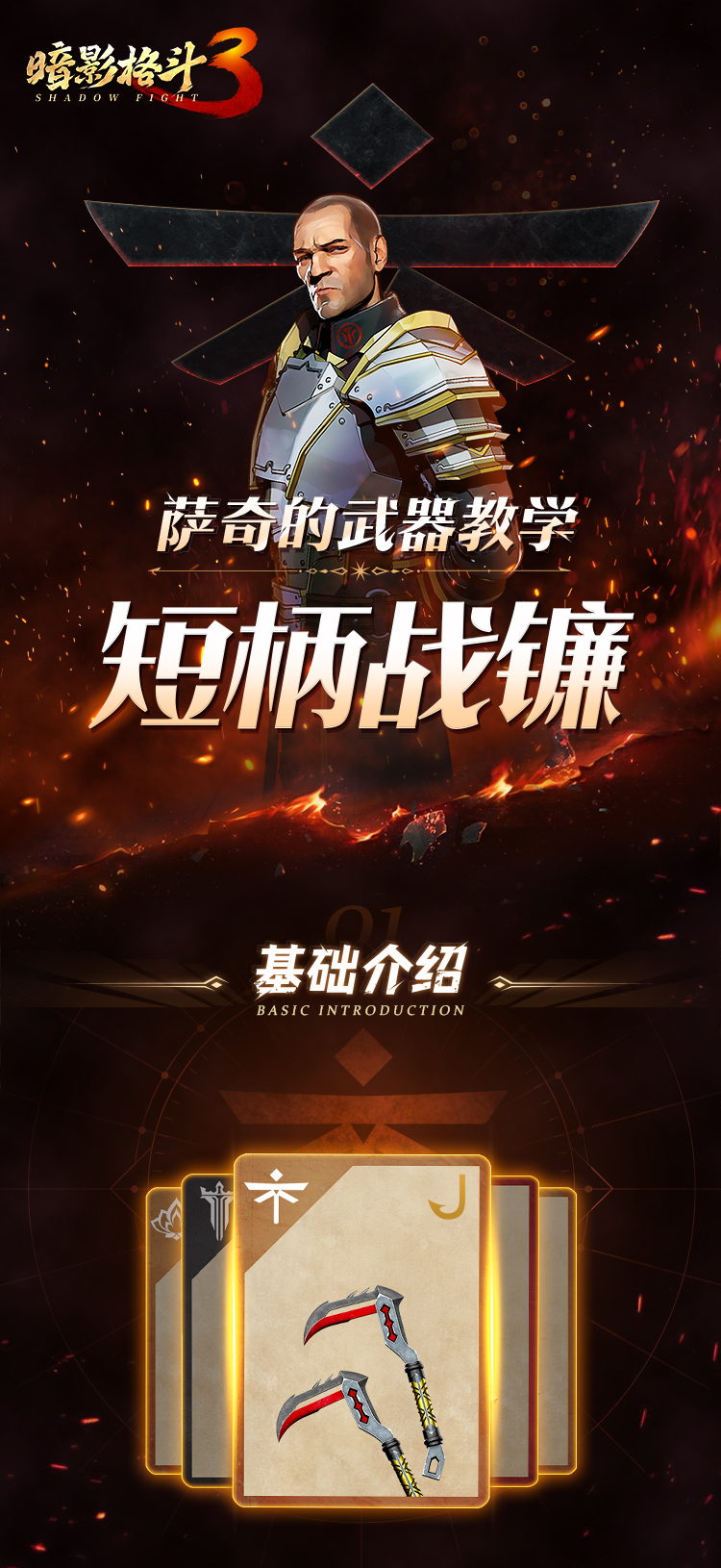 今天,我们来介绍下先锋派系史诗武器——短柄战镰,镰刀本是传统农作工具,在《暗影格斗3》中,镰刀也成为极具攻击性的近战武器,具有较高的暴击率。下面,我们就来学习下短柄战镰的实战演示↓↓↓