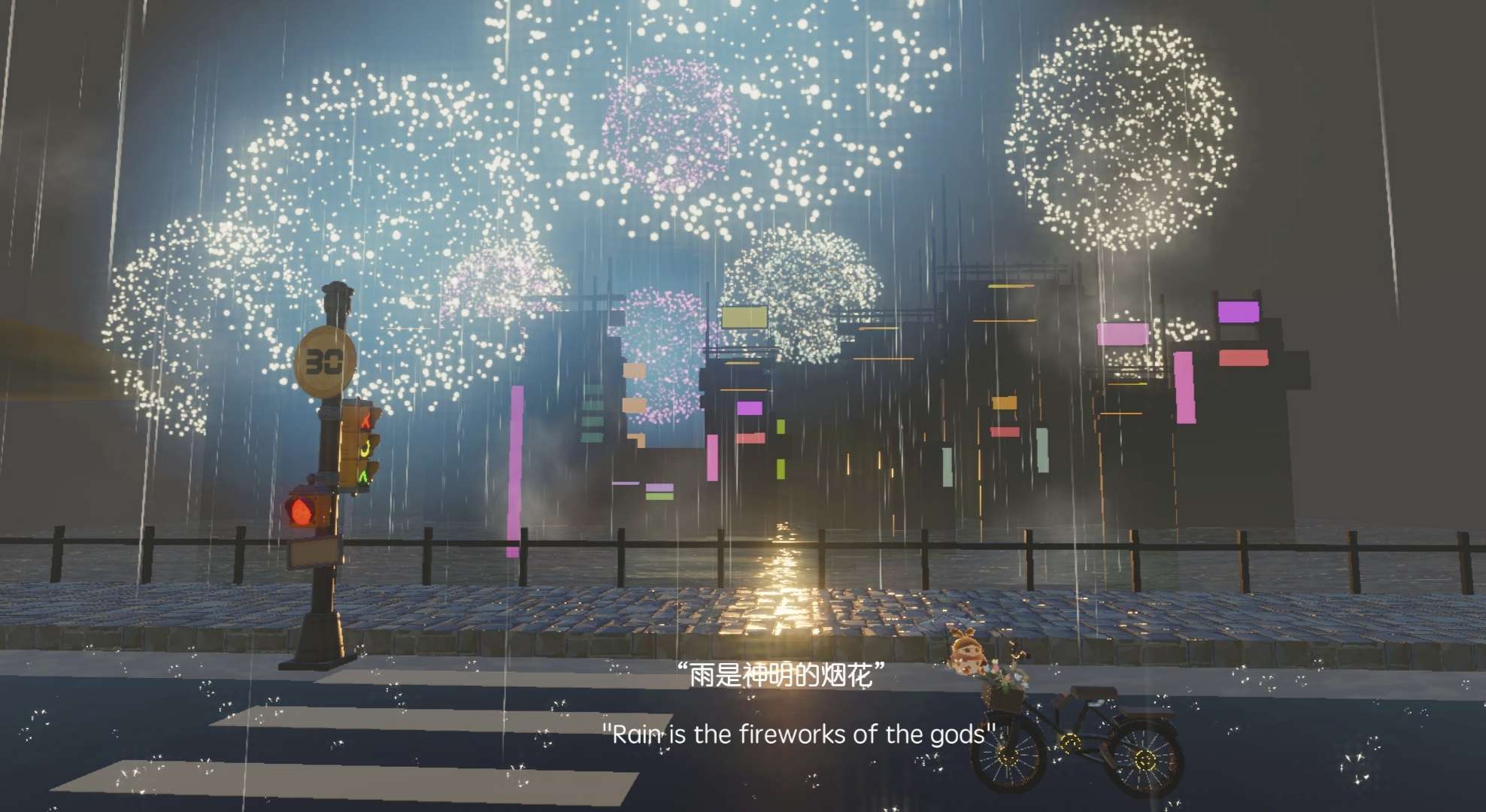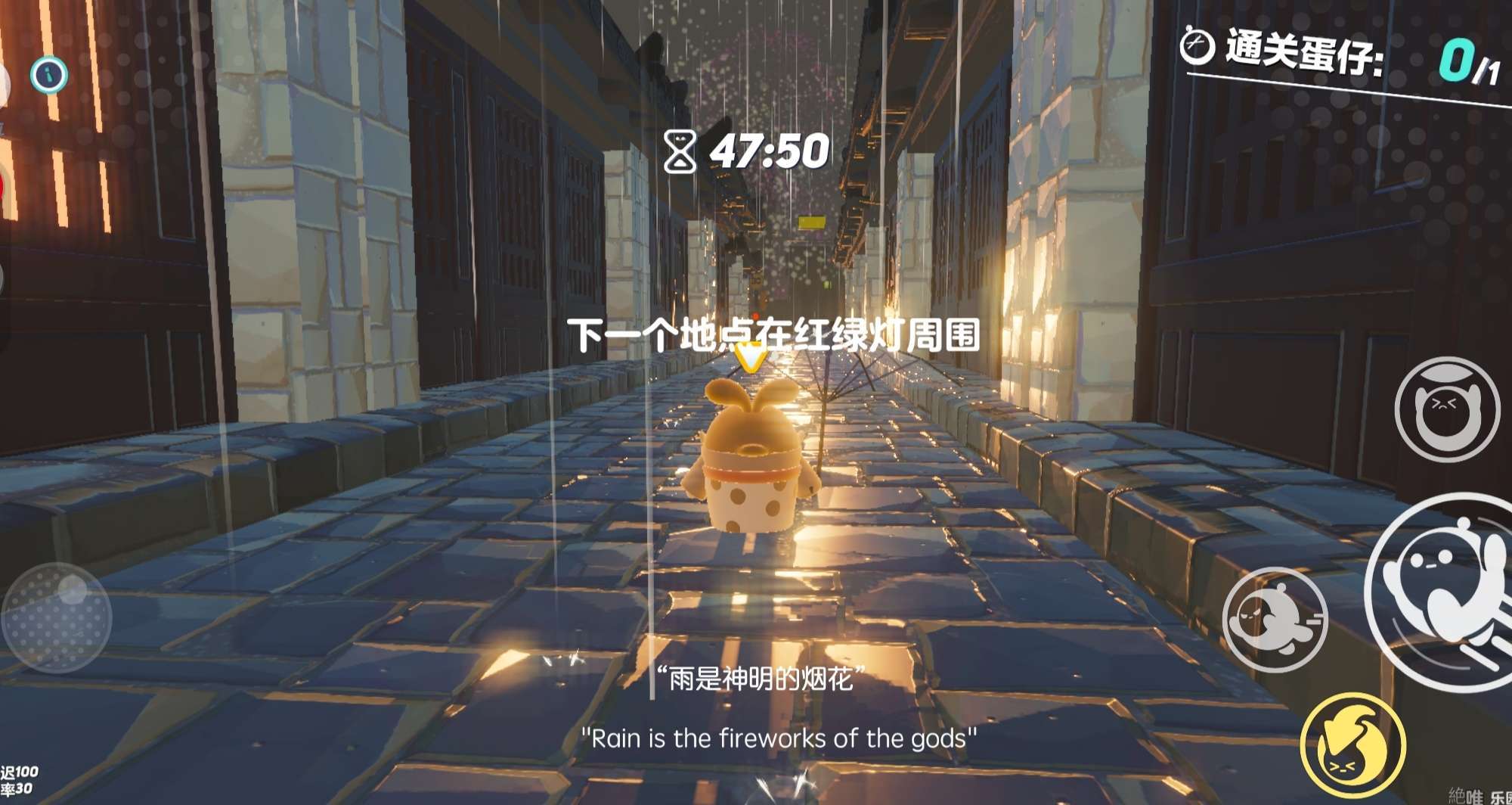 "雨是神明的烟花"穿到一个小街道上,我们的蛋仔在发光呢![下一个地点在红绿灯周围]