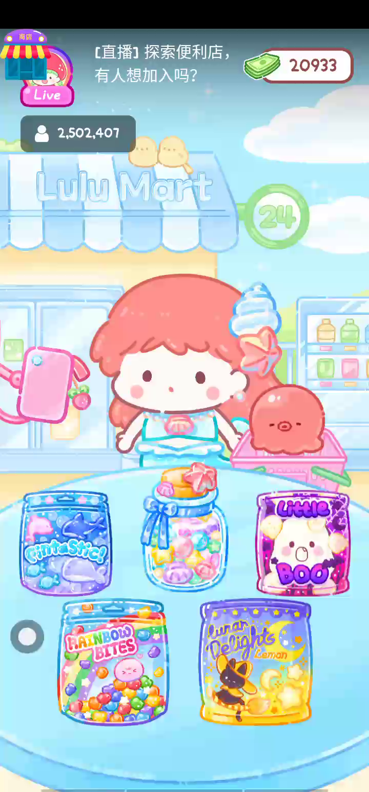 - 添加了新的宠物专用零食! 在Mini-Mart的宠物区逛逛吧。 - 看起来很好吃,但不是给露露的! 这次是给我们的毛茸茸的朋友们的。 - 发现每只宠物的最爱零食! 提示:不是薄荷味的哦... 来,准备好了吧?现在就马上挑战成为糖葫芦达人吧! 「你进行草莓糖葫芦吃播的话,我就赞助100元。」 「脆口的声音太迷人了(°θ°)」 由于客人都被最近新开的许多糖葫芦店家抢走,曾经号称糖葫芦达人的父母因此卧病在床。 继承父母店面的主角露露开始糖葫芦吃播来宣传店面。 直到成为真正的糖葫芦达人那一天! 「今天我也要开始糖葫芦直播罗!( •o• )」