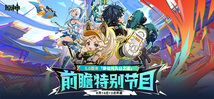 亲爱的旅行者,《原神》5.0版本「荣花与炎日之途」前瞻特别节目将于8月16日(本周五)12:00正式开启。