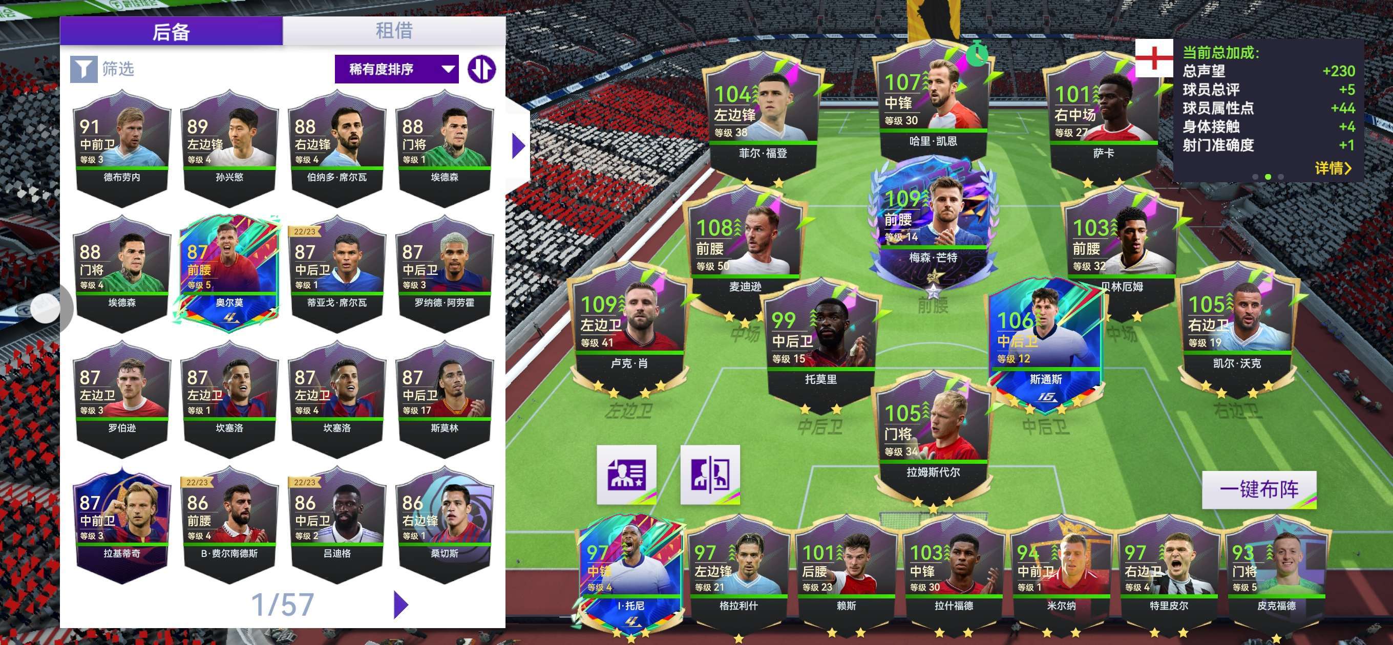 看看我阵容大佬们(有没有好用的英格兰中场当替补,84分左右)