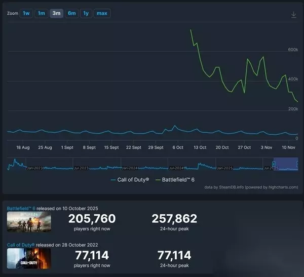 使命召唤7 STEAM 黑色行动7公测遇冷,Steam在线人数远逊战地6