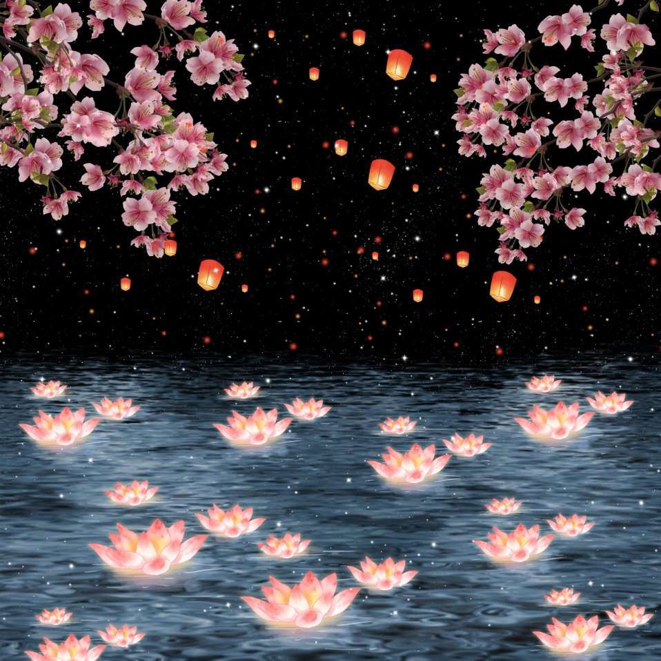 黑黑的夜晚,浓郁的轿厢,美丽的荷花
