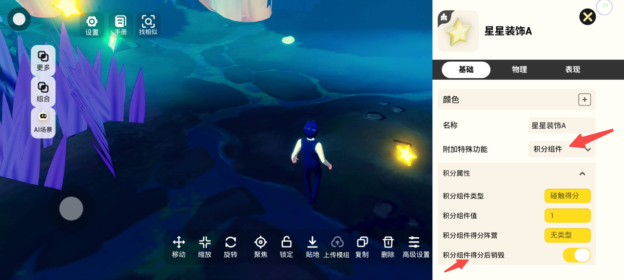 2.打开星星的高级设置,给它变成可以吃的积分!