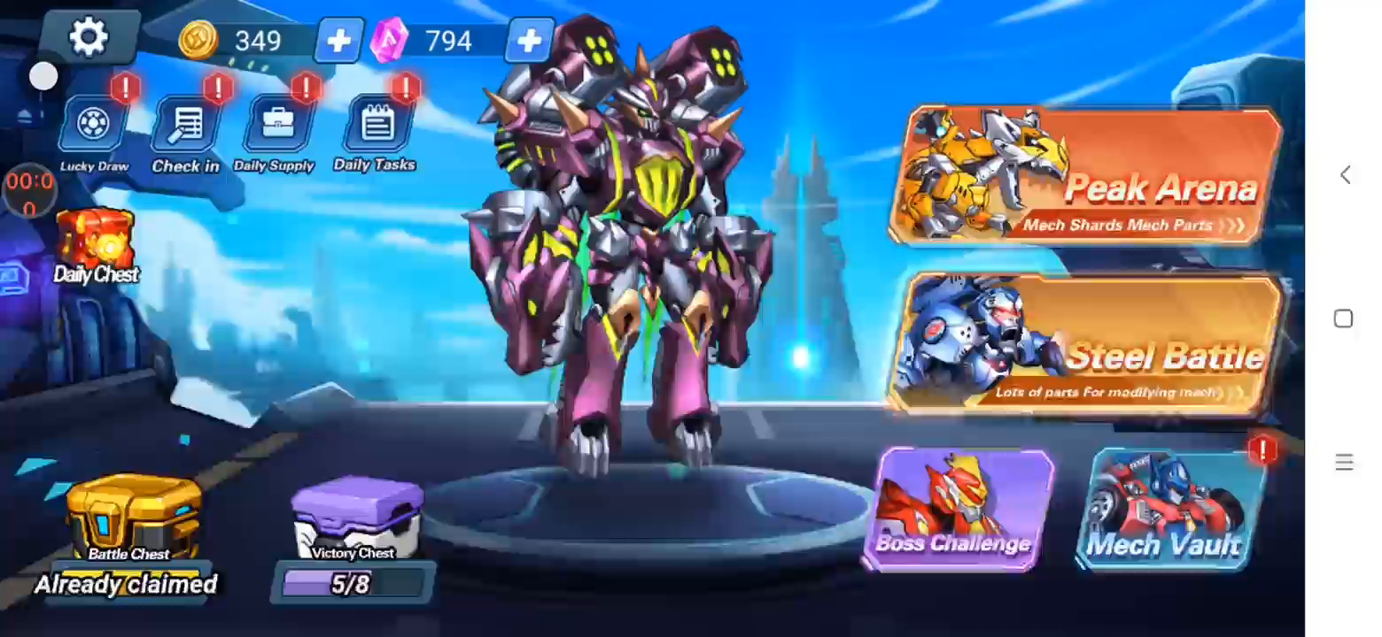 与强大的机甲进行激动人心的战斗,机甲具有丰富的角色,可完全自定义。随着您的排名上升并与强大的对手较量,体验令人眼花缭乱的特殊效果。准备迎接挑战!立即释放兴奋! 准备好在机甲野兽决斗中征服战场!准备参加每一步都至关重要的令人心跳加速的机甲战斗。凭借各种各样的角色,您会在高耸的机器中找到的匹配。构建、升级和自定义您的机甲,以创建适合您游戏风格的不可阻挡的战争机器。见证令人惊叹的特效,让战斗栩栩如生,让您沉浸在激烈战斗的史诗世界中。 随着排名攀升,面对最熟练的对手,成为真正的。在激动人心的 PvP 比赛中测试您的勇气,并在令人振奋的决斗中证明您的统治地位。在机甲野兽决斗中,兴奋永无止境。你准备好组装你的武器库并称霸竞技场了吗?准备好迎接一场与众不同的肾上腺素刺激冒险! 整装待发,潜入机甲野兽决斗的激动人心的世界!克服困难,释放您的战略实力,并取得胜利。战斗现在开始