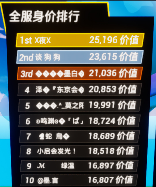 恭喜@墨.言成功杀入全服身价排行榜前十哦~