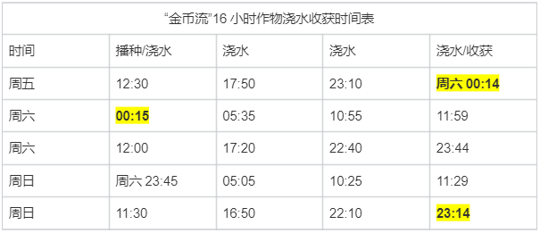 为了赶上周六0点的第一波周末双倍加成,星宝们可以在周五早8收获之后,利用6小时作物来弥补时差,在8点05种下作物之后,卡10:05/12:05分别浇水,便可以在12点29分收获。接着从12点30分后再继续开始新一轮的高金币作物/动物养殖,即可美美享受周末双倍加成啦~