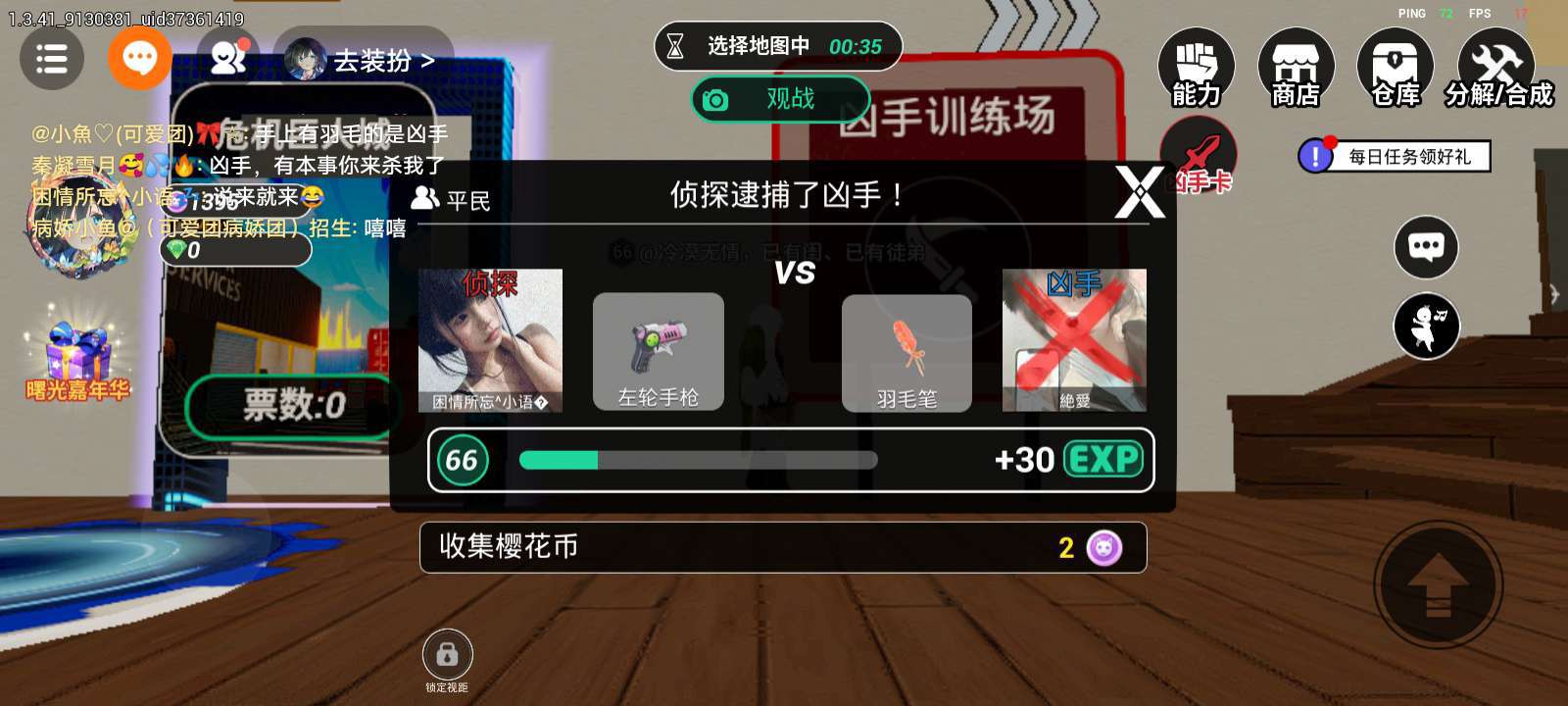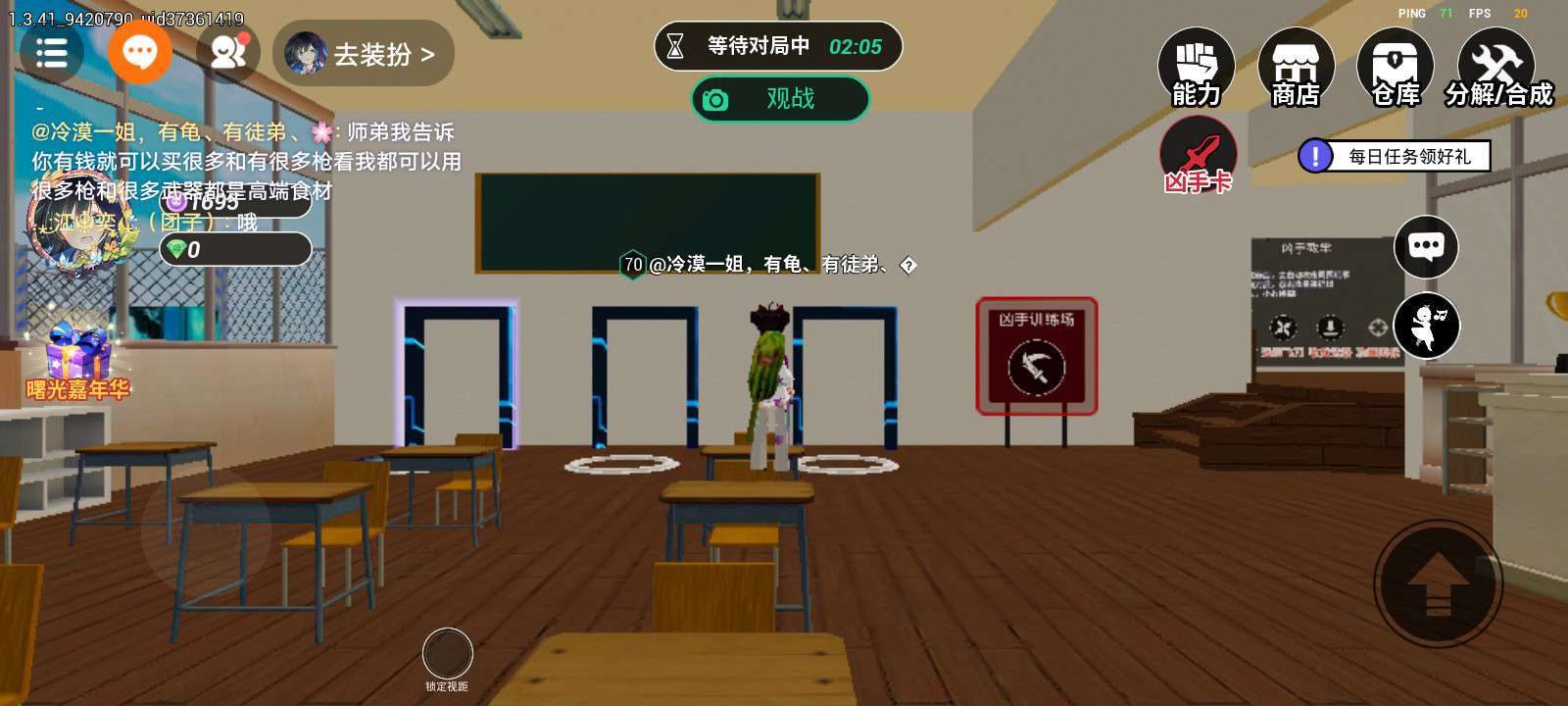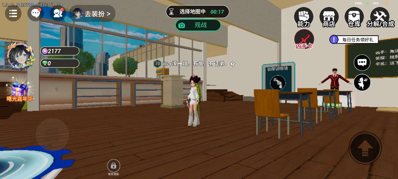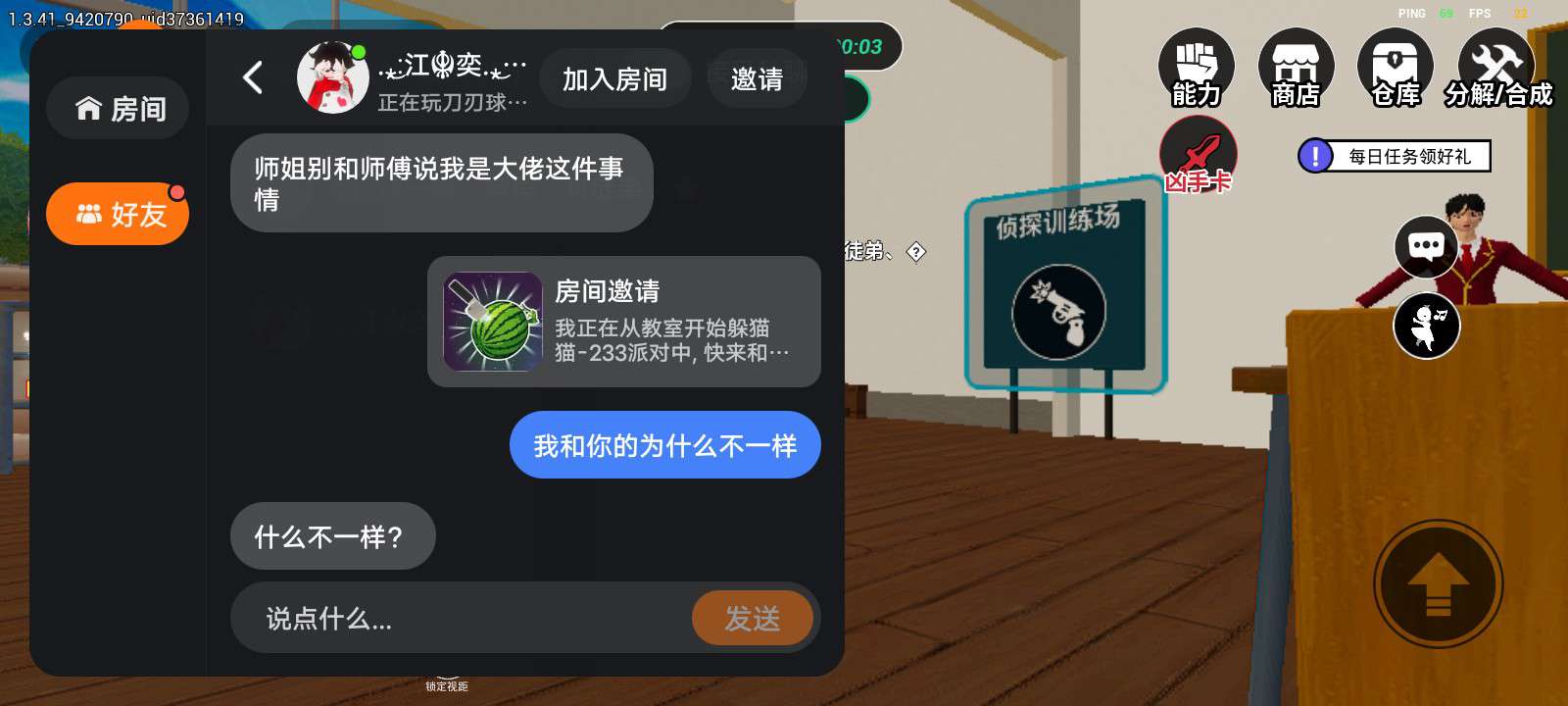 233派对精选地图-从教室开始躲猫猫 *************这是一场校内角色扮演游戏,我们使用的都是玩具刀枪************* *************游戏行为请勿带进现实模仿******************** 游戏背景:校园突发神秘事件?!身处其中,你的身份是什么?平民?侦探?或是凶手! 欢迎游玩 在这里,每种身份都有独特的获胜方式,快来体验吧!