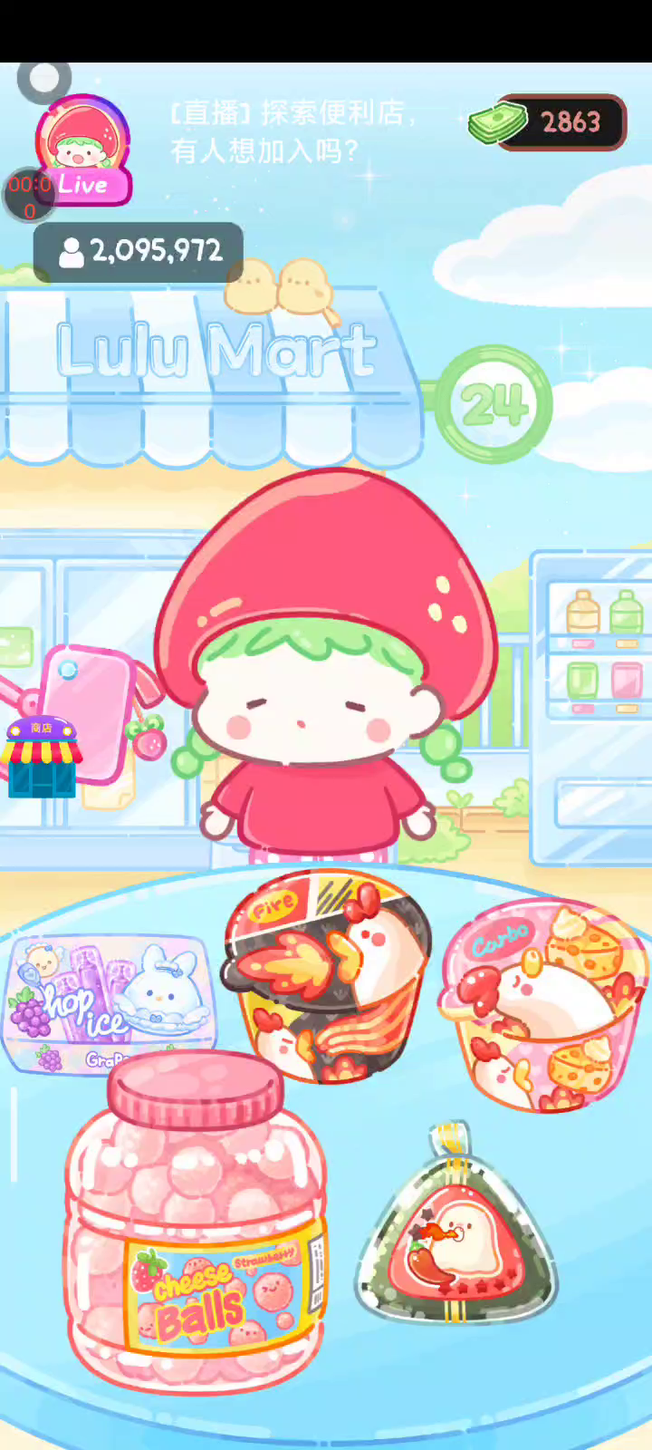- 冰淇淋摊刚在迷你超市开张了! - 哇 - 高级冰淇淋?!观看广告可获得随机免费一球! - 五种口味?给我最好吃的一个! 制作自己专属的糖葫芦,挑战吃播ASMR吧! 「你进行草莓糖葫芦吃播的话,我就赞助100元。」 「脆口的声音太迷人了(°θ°)」 由于客人都被最近新开的许多糖葫芦店家抢走,曾经号称糖葫芦达人的父母因此卧病在床。 继承父母店面的主角露露开始糖葫芦吃播来宣传店面。 直到成为真正的糖葫芦达人那一天! 「今天我也要开始糖葫芦直播罗!( •o• )」 [串材料] 只有新鲜的水果的话,很难以一名吃播实况主存活下来。还要有松饼、地球软糖、青阳辣椒!利用奇特的材料制作糖葫芦吧。 [裹糖衣] 将材料串满竹签的话,就放进锅子搅动吧。唯有利用达人的秘法,才能裹出又薄又脆的糖衣。 [即时吃播] 咔哒咔哒!今天的吃播也大成功。热烈的聊天内容看起来反应也不错。看来得利用完成观众任务得到的赞助金来买新材料了! 来,准备好了吧?现在就马上挑战成为糖葫芦达人吧!