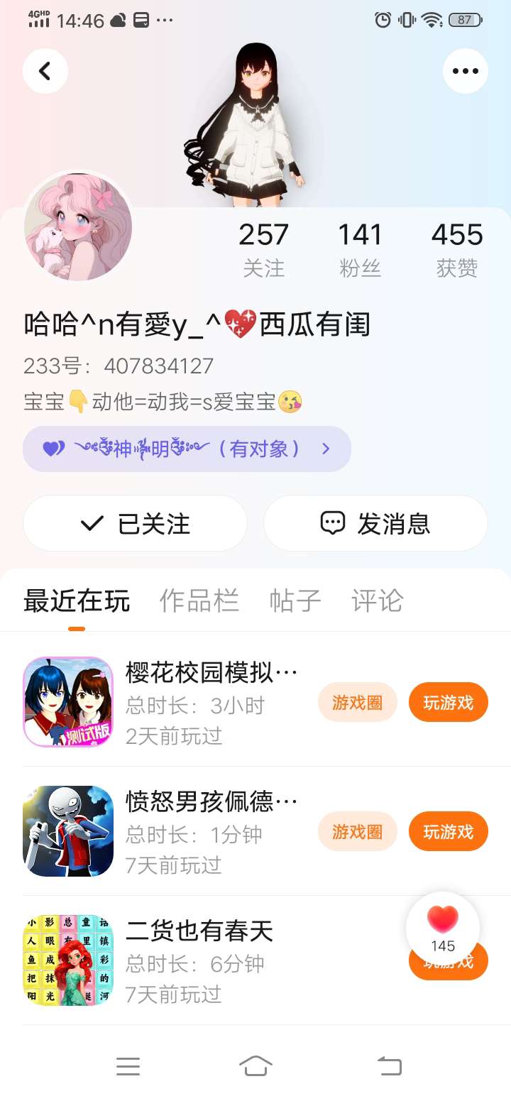 本人要退游了!原因是视力的问题(现在400度),所以我有可能不玩儿了,所以大家别加我好友了哈!😭