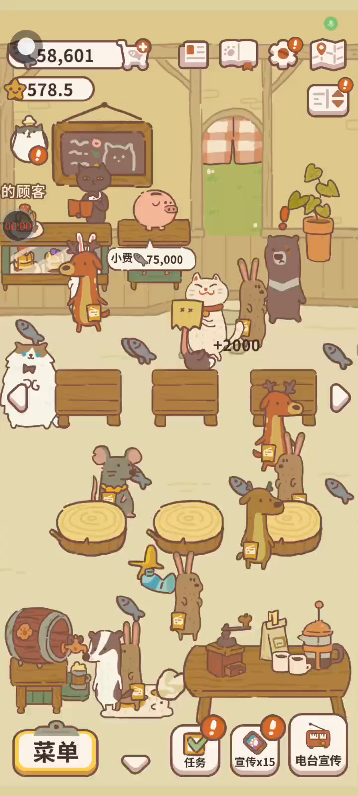 动物餐厅是一款餐厅管理游戏,您将进入令人敬畏的可爱动物角色的世界。您将从第一步开始发展您的餐厅,随着时间的推移,您将购买许多物品来支持赚钱。同时,玩法上并没有太多的难度,只需要关心餐厅的发展,解决顾客过多时的问题即可。 体验游戏周年纪念活动 在最新版本的《动物餐厅》中,玩家将参加游戏的周年庆典活动。当你开始游戏时,你就会知道在活动期间你需要做什么。您将发现新添加的功能并为新客人提供服务以赚取更多收入。同时,你会看到一个任务系统等待你去完成,而纪念品奖励也在等着你。 管理一家动物餐厅 当您开始体验动物餐厅时,您一定会对它所带来的乐趣印象深刻。游戏的画面设计柔和、美观,能够吸引任何玩家的第一体验。同时,你在这款游戏中服务的顾客是拟人化的动物,会像人类一样行动。它可以给玩家带来乐趣和创新感。 玩家将在2.5D环境中管理一家餐厅,你会看到人们一一走进你的餐厅。当你开始体验这个游戏时,一个有趣的特点是,你面前不会出现任何桌椅。因此,你的工作就是花时间改进和升级餐厅,使其令人印象深刻,并找到吸引更多顾客的方法。这款游戏的玩法对于玩家来说完全没有挑战性。 建立并发展您的餐厅 在动物餐厅中,你的餐厅将被划分为许多不同的区域。当你可以以显着的方式观察你所在区域的元素时,它与其他管理游戏完全不同。所以如果你想要o 移动到厨房等特定区域时,您将需要使用按钮来切换它们。尽管您需要在区域之间移动,但这不会让您感到太不舒服。 您在区域之间的切换可确保它始终顺利运行,并且如果出现问题,您会找到改进方法。该游戏中执行的操作完全自动化。所以,当你预订了新的厨房和桌子后,你需要看着客人来,他们的食物就会自动上桌。你的工作是帮助稳定资金流程并解决没有客人座位的问题。 您的餐厅将逐渐充满不同类型的桌椅和不同的厨房用品。您需要注意的一个有趣的点是,如果您已经构建了一个表,那么您将需要在以下类别中创建与前一个表相同的表,并且您将花费的钱也会增加。或者,您可以开展促销活动来吸引更多客人,并确保您能够满足所有客人的需求。