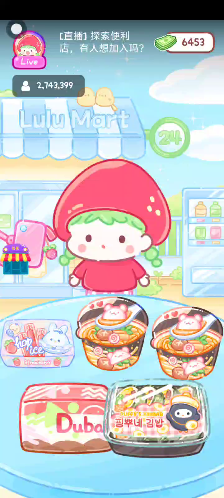 - 冰淇淋摊刚在迷你超市开张了! - 哇 - 高级冰淇淋?!观看广告可获得随机免费一球! - 五种口味?给我最好吃的一个! 制作自己专属的糖葫芦,挑战吃播ASMR吧! 「你进行草莓糖葫芦吃播的话,我就赞助100元。」 「脆口的声音太迷人了(°θ°)」 由于客人都被最近新开的许多糖葫芦店家抢走,曾经号称糖葫芦达人的父母因此卧病在床。 继承父母店面的主角露露开始糖葫芦吃播来宣传店面。 直到成为真正的糖葫芦达人那一天! 「今天我也要开始糖葫芦直播罗!( •o• )」 [串材料] 只有新鲜的水果的话,很难以一名吃播实况主存活下来。还要有松饼、地球软糖、青阳辣椒!利用奇特的材料制作糖葫芦吧。 [裹糖衣] 将材料串满竹签的话,就放进锅子搅动吧。唯有利用达人的秘法,才能裹出又薄又脆的糖衣。 [即时吃播] 咔哒咔哒!今天的吃播也大成功。热烈的聊天内容看起来反应也不错。看来得利用完成观众任务得到的赞助金来买新材料了! 来,准备好了吧?现在就马上挑战成为糖葫芦达人吧!