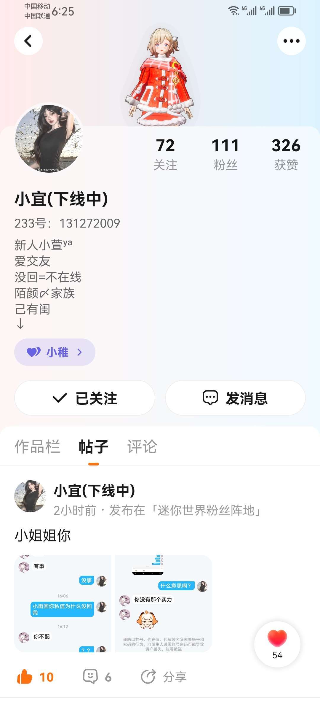 小雨的暑假粉丝福利来咯,点开迷你世界,点开小雨的动态就可以参加啦 小雨的迷你号:1768103191