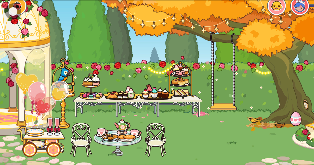 再往右边走时,看见了一颗大枫树,枫树的一根树枝上绑上了秋千,我们可以荡来荡去,超级好玩,玩累了,可以在旁边吃甜品,旁边的鹦鹉看见了都想吃。