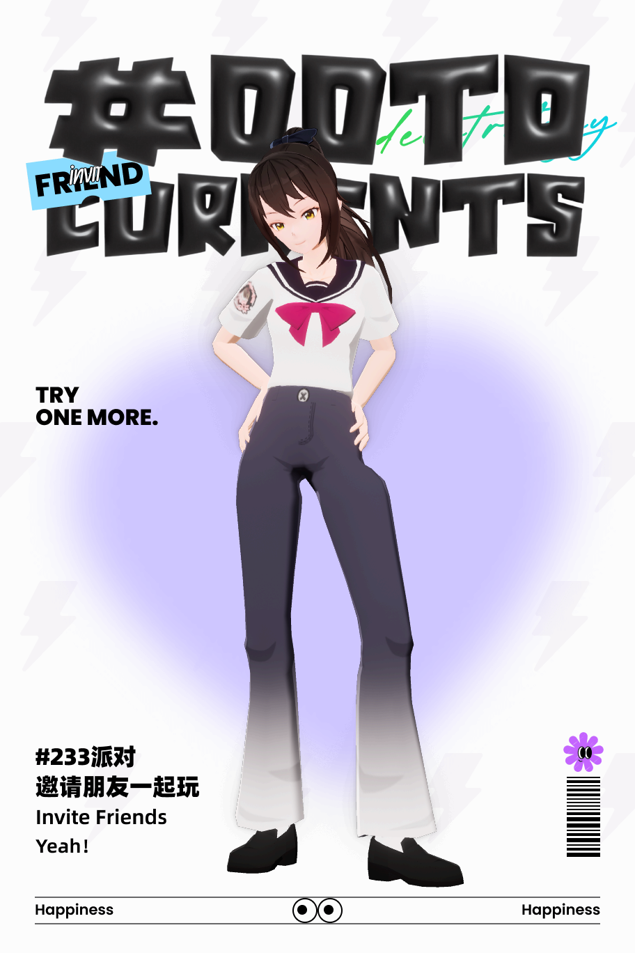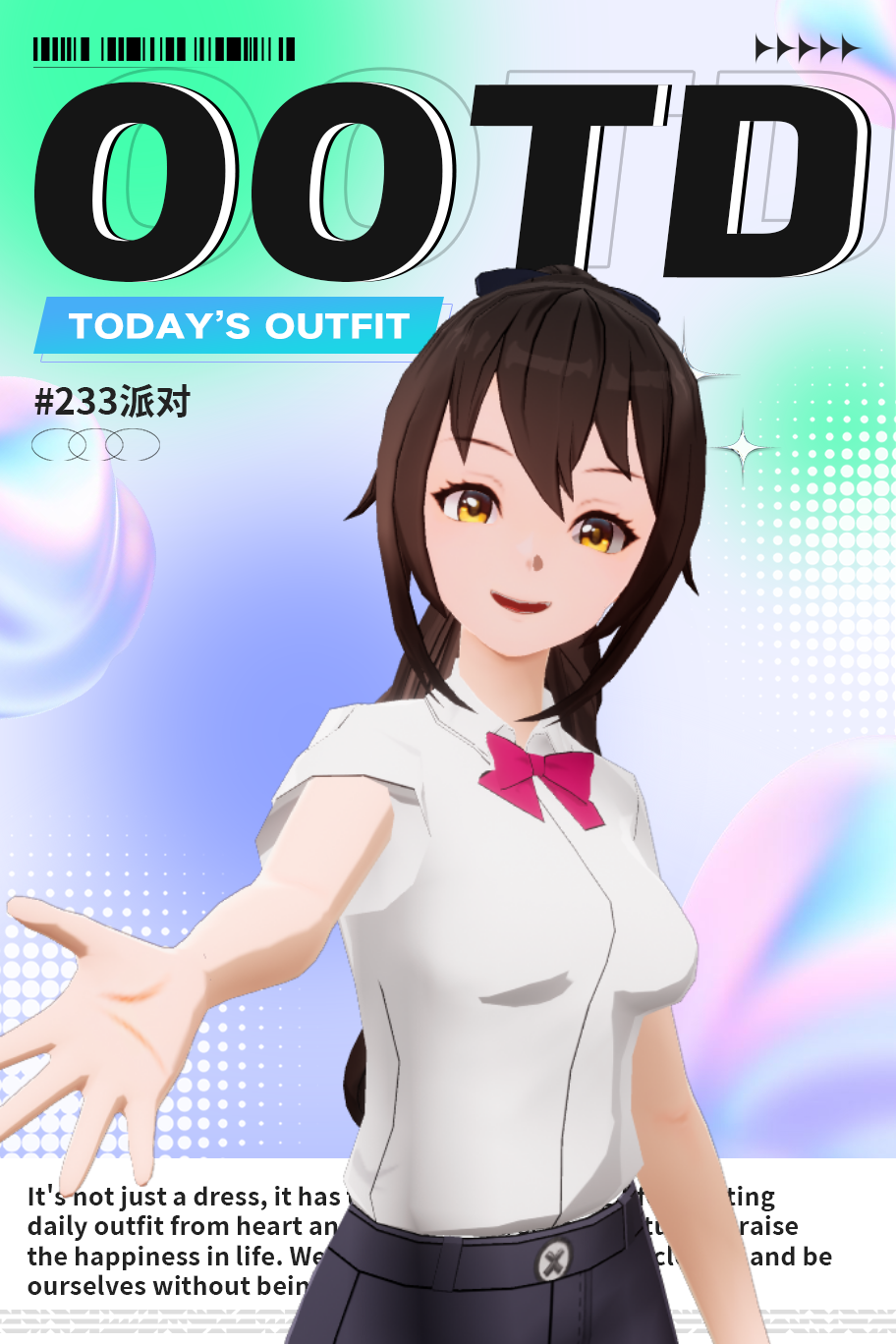 夏天穿搭。校服加长裤。扎着马尾。