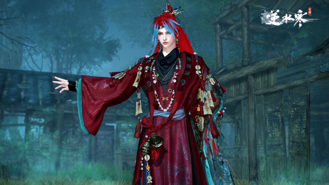 玄冥肃寒威,凛凛有道骨。男款时装【玄冥道骨】一袭暗红色道袍震慑邪祟,开襟上绣制的八卦图、手臂上装饰的符咒与铜钱、珠串,更将古老神秘的民俗色彩展现得淋漓尽致。