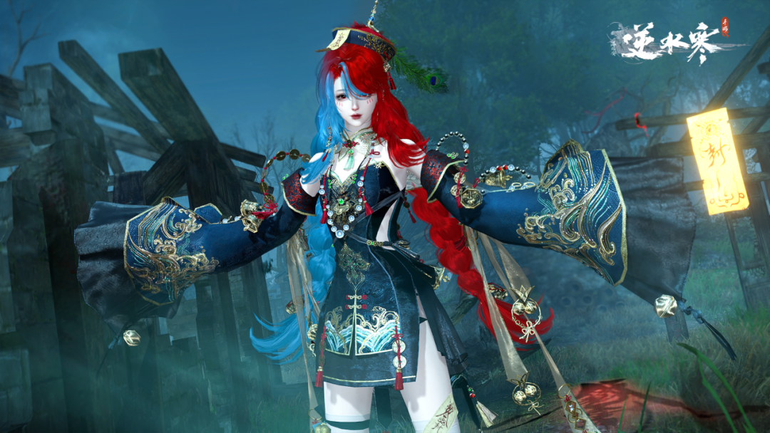 当青色与红色交织,矛盾中构造出出乎意料的和谐,稀有发型【青冥曙晖】自带神秘幽冷气息。