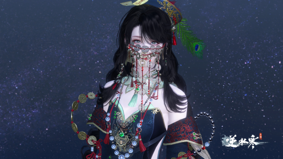 铜钱覆面,符箓飘摇。全新专属配饰【五方通宝】以红线串联铜钱,并悬挂道符、玉珠等装饰,风格独特。