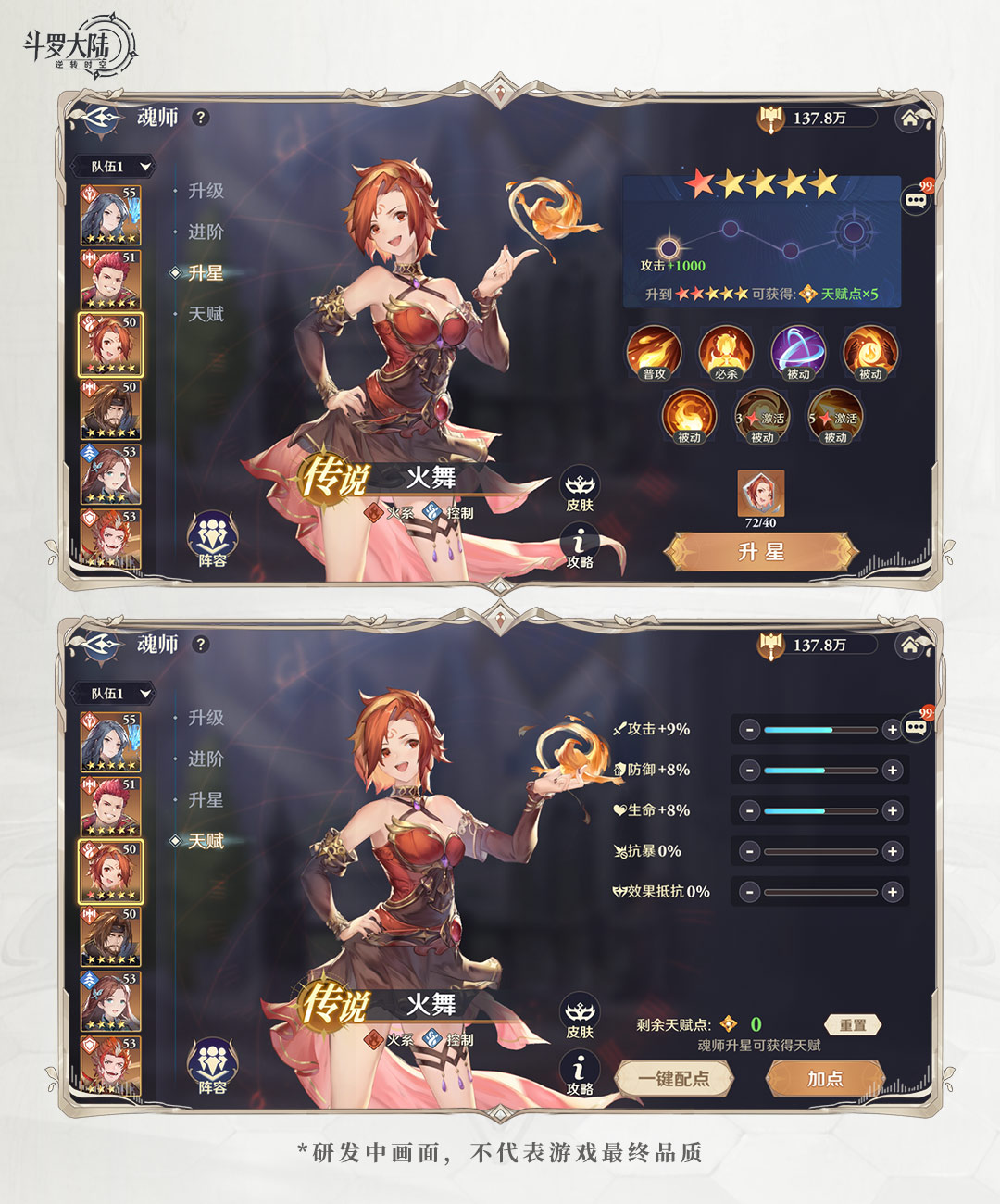4、魂师天赋:魂师每次升星,可获得5点天赋点,分配天赋点后可以获得战力加成。