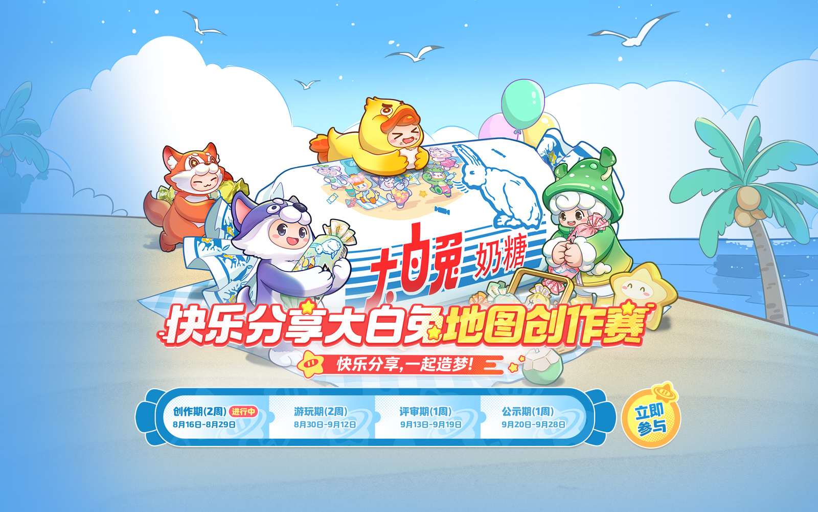 8月16日-8月29日“大白兔快乐乐园”主题地图创作大赛开启,香浓奶糖搭配奇思妙想,会创造出怎样的星世界地图呢?完成创作还有好礼相送!快来参与其中吧!