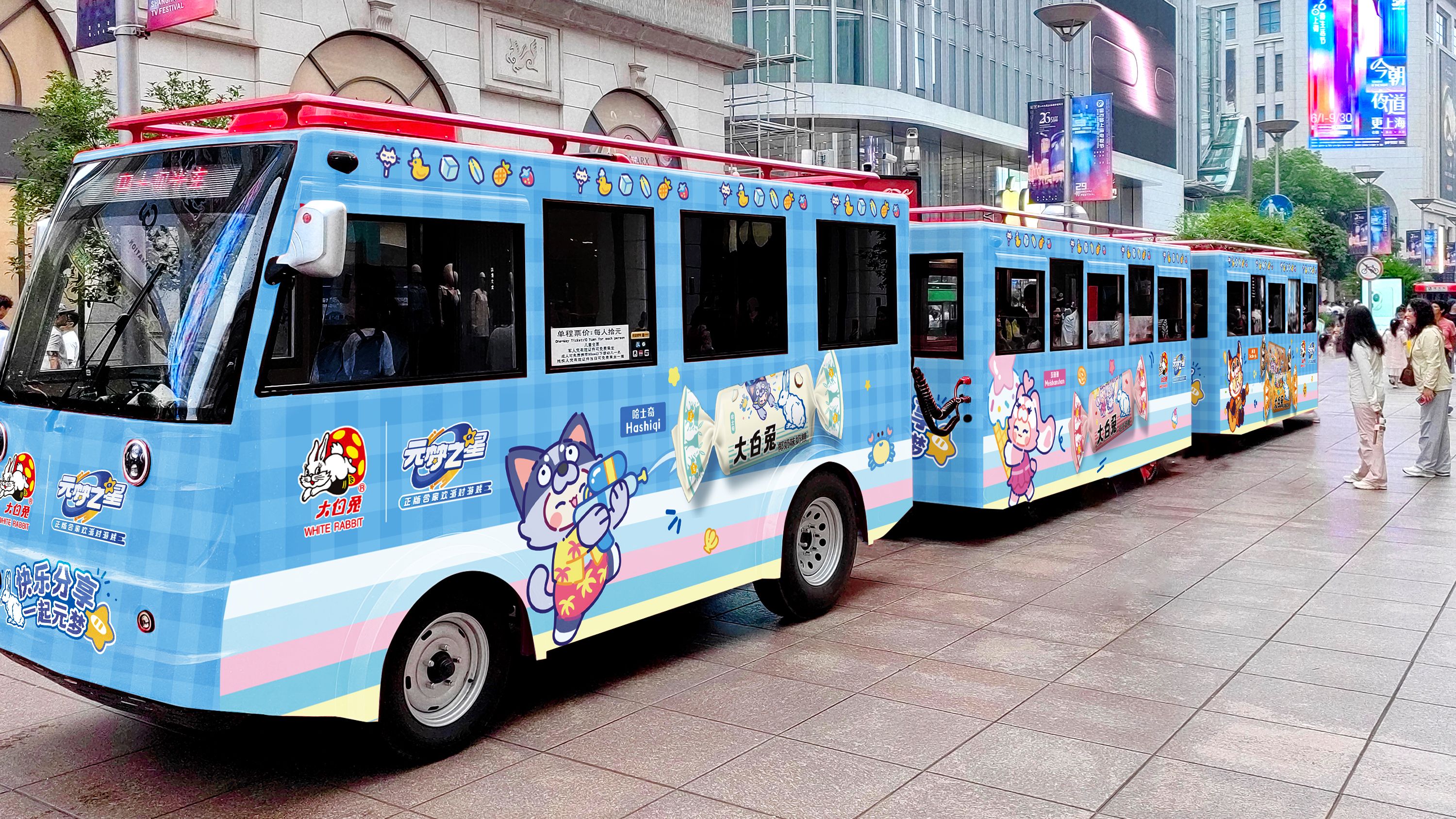 除过线上的各种惊喜联动外,昭昭在线下还埋藏了彩蛋内容!来到上海南京路步行街,有机会偶遇超级可爱的,元梦之星×大白兔主题铛铛车!