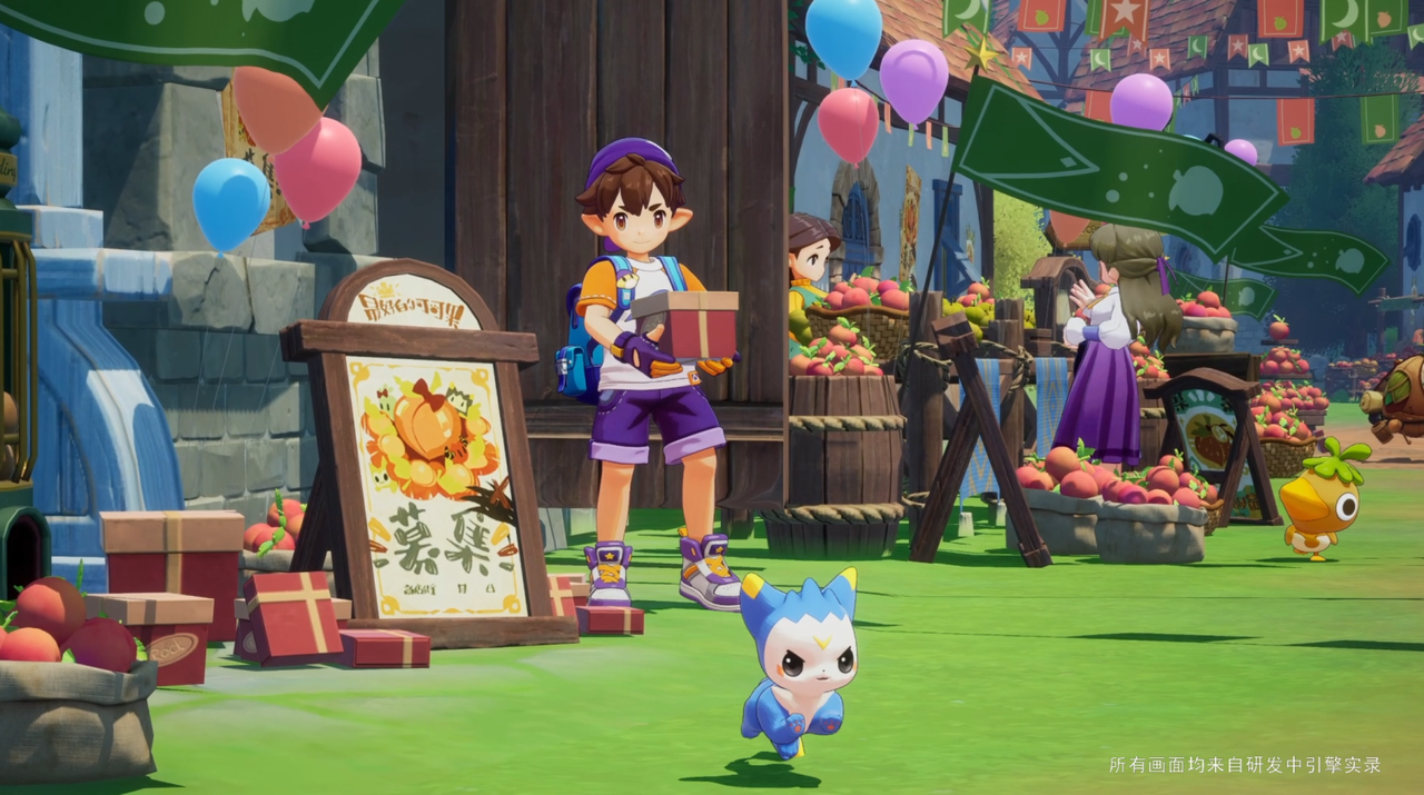这里是崭新的洛克王国, 烟火气是最好的诠释。 这里有人群。 有小情侣、有一家三口、有长途跋涉的旅人,就连你熟悉的店主朋友们也走出了固定的场所,在采办在闲聊在实时地吃瓜(笑),他们鲜活而真实,似乎就是土生土长的小镇居民,一饮一啄浑然天成。
