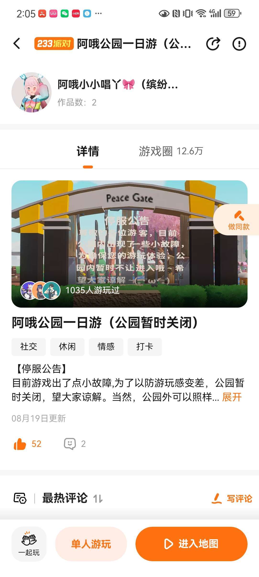 目前游戏出了点小故障,为了以防游玩感变差,公园暂时关闭,当然,公园外可以照样玩哦~(^з^)-☆(官方快点吧AI聊天模版回复吧~NPC都已经出故障啦!)
