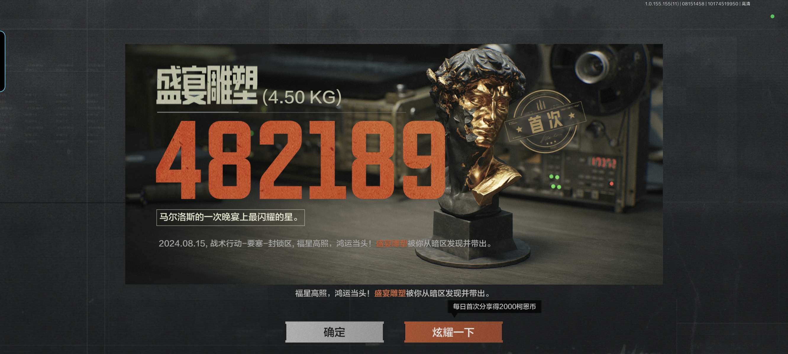 有个人在要塞矿洞撤离时来晚了,碰到我了,他队友我没管,发老几枪点掉后从包里翻到个这,又有人睡不着了