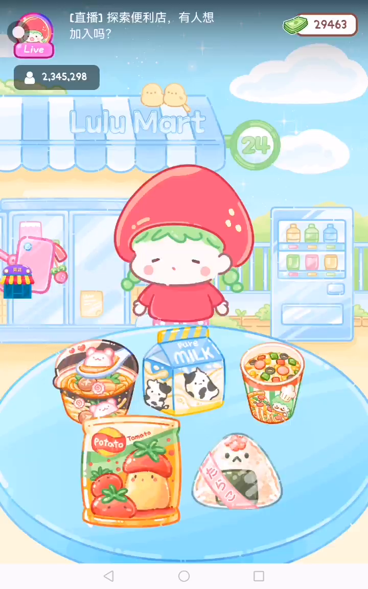 - 冰淇淋摊刚在迷你超市开张了! - 哇 - 高级冰淇淋?!观看广告可获得随机免费一球! - 五种口味?给我最好吃的一个! 制作自己专属的糖葫芦,挑战吃播ASMR吧! 「你进行草莓糖葫芦吃播的话,我就赞助100元。」 「脆口的声音太迷人了(°θ°)」 由于客人都被最近新开的许多糖葫芦店家抢走,曾经号称糖葫芦达人的父母因此卧病在床。 继承父母店面的主角露露开始糖葫芦吃播来宣传店面。 直到成为真正的糖葫芦达人那一天! 「今天我也要开始糖葫芦直播罗!( •o• )」 [串材料] 只有新鲜的水果的话,很难以一名吃播实况主存活下来。还要有松饼、地球软糖、青阳辣椒!利用奇特的材料制作糖葫芦吧。 [裹糖衣] 将材料串满竹签的话,就放进锅子搅动吧。唯有利用达人的秘法,才能裹出又薄又脆的糖衣。 [即时吃播] 咔哒咔哒!今天的吃播也大成功。热烈的聊天内容看起来反应也不错。看来得利用完成观众任务得到的赞助金来买新材料了! 来,准备好了吧?现在就马上挑战成为糖葫芦达人吧!