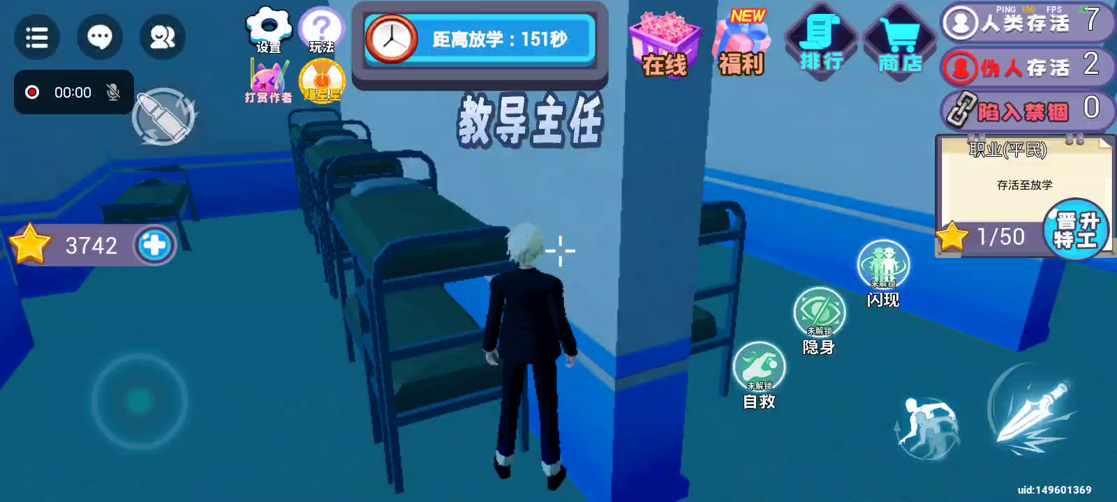 规则怪谈学校混入了一名怪物杀手,拾取星星升级成为特工可获得武器,找出伪人杀手挑战他,在战斗中击败他即可获得胜利。多拾取星星可获得移速成长升属性。或者坚持到放学逃离学校也可以获得胜利,躲猫猫排行榜上有你的传说吗?