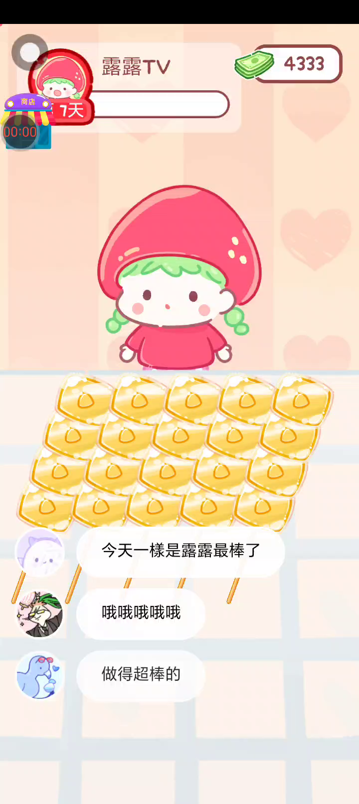- 冰淇淋摊刚在迷你超市开张了! - 哇 - 高级冰淇淋?!观看广告可获得随机免费一球! - 五种口味?给我最好吃的一个! 制作自己专属的糖葫芦,挑战吃播ASMR吧! 「你进行草莓糖葫芦吃播的话,我就赞助100元。」 「脆口的声音太迷人了(°θ°)」 由于客人都被最近新开的许多糖葫芦店家抢走,曾经号称糖葫芦达人的父母因此卧病在床。 继承父母店面的主角露露开始糖葫芦吃播来宣传店面。 直到成为真正的糖葫芦达人那一天! 「今天我也要开始糖葫芦直播罗!( •o• )」 [串材料] 只有新鲜的水果的话,很难以一名吃播实况主存活下来。还要有松饼、地球软糖、青阳辣椒!利用奇特的材料制作糖葫芦吧。 [裹糖衣] 将材料串满竹签的话,就放进锅子搅动吧。唯有利用达人的秘法,才能裹出又薄又脆的糖衣。 [即时吃播] 咔哒咔哒!今天的吃播也大成功。热烈的聊天内容看起来反应也不错。看来得利用完成观众任务得到的赞助金来买新材料了! 来,准备好了吧?现在就马上挑战成为糖葫芦达人吧!