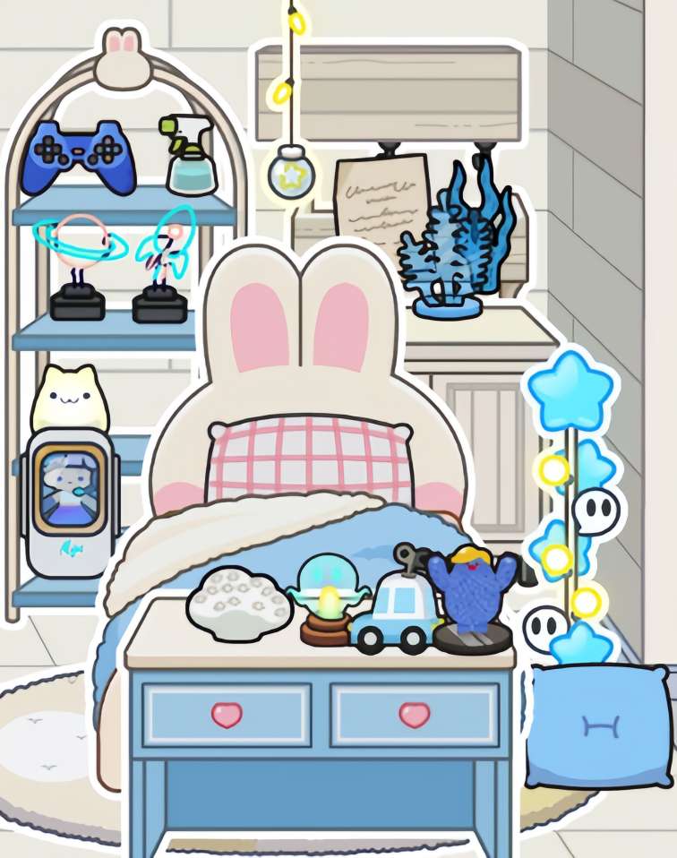 以下是蓝色卧室布置