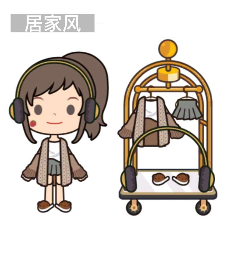 ◎第四套是居家风,所谓的居家风,也就是懒人的专属,棕色的长袖,搭配着一件灰色百褶裙,带着一个黄黑色的耳机,再穿上一双小熊拖鞋,真的超适合居家,也是一身精致的居家女孩装🙈