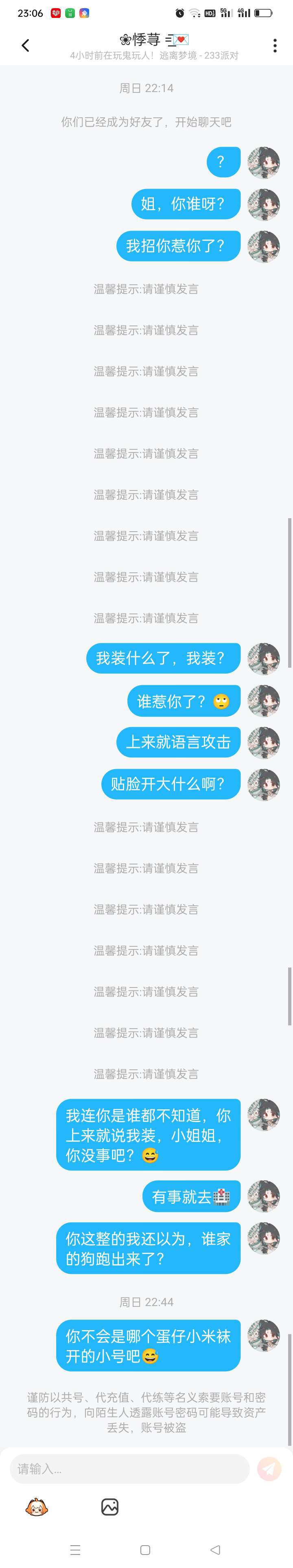 前两天加我的,等了她两天都没回我消息,我还等着骂她呢,嘴也不张什么,好友申请上写的是问我“装什么装?”,不是我请问呢小姐姐,我哪里招惹你了?我又装什么了?😅