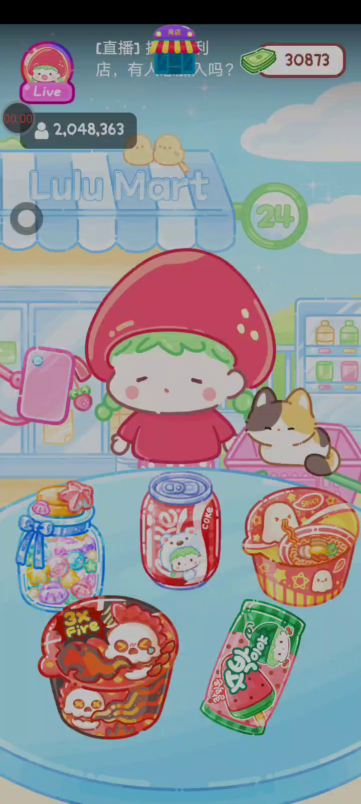 - 冰淇淋摊刚在迷你超市开张了! - 哇 - 高级冰淇淋?!观看广告可获得随机免费一球! - 五种口味?给我最好吃的一个! 制作自己专属的糖葫芦,挑战吃播ASMR吧! 「你进行草莓糖葫芦吃播的话,我就赞助100元。」 「脆口的声音太迷人了(°θ°)」 由于客人都被最近新开的许多糖葫芦店家抢走,曾经号称糖葫芦达人的父母因此卧病在床。 继承父母店面的主角露露开始糖葫芦吃播来宣传店面。 直到成为真正的糖葫芦达人那一天! 「今天我也要开始糖葫芦直播罗!( •o• )」 [串材料] 只有新鲜的水果的话,很难以一名吃播实况主存活下来。还要有松饼、地球软糖、青阳辣椒!利用奇特的材料制作糖葫芦吧。 [裹糖衣] 将材料串满竹签的话,就放进锅子搅动吧。唯有利用达人的秘法,才能裹出又薄又脆的糖衣。 [即时吃播] 咔哒咔哒!今天的吃播也大成功。热烈的聊天内容看起来反应也不错。看来得利用完成观众任务得到的赞助金来买新材料了! 来,准备好了吧?现在就马上挑战成为糖葫芦达人吧!