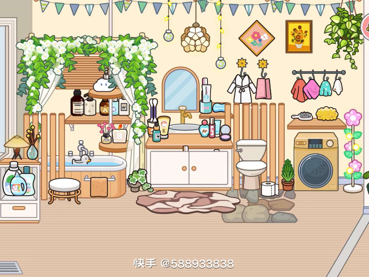 原木风。粉色自建房。呵呵