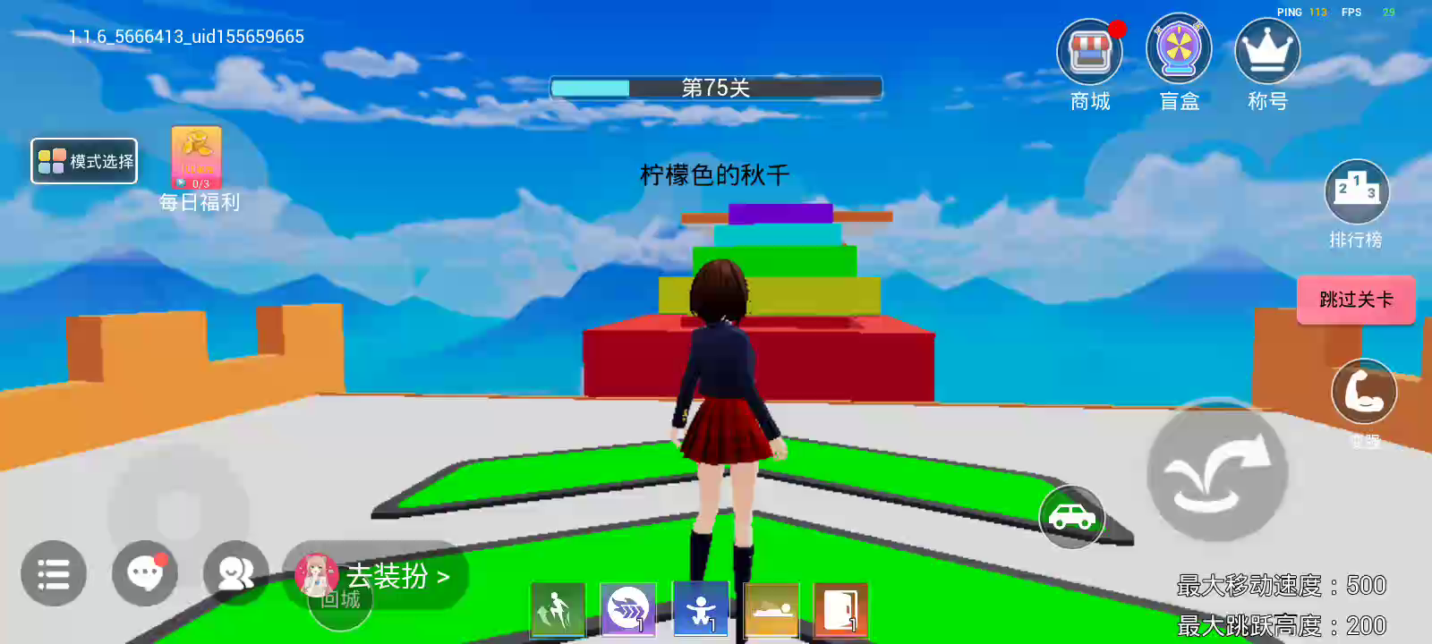 竞速模式来袭!超快速度!畅快跑酷! 争夺冠军登上天梯榜首!超多金币奖励! 樱校粉丝自制关卡: 放假了! 谁也拦不住我~ 为了能够享受更多的假期时光 你能否通过重重障碍逃离校园成功回家? 快叫上你的小伙伴们,一起逃离樱花校园吧! 记得打卡拍照发布游戏圈,给作者点鼓励~