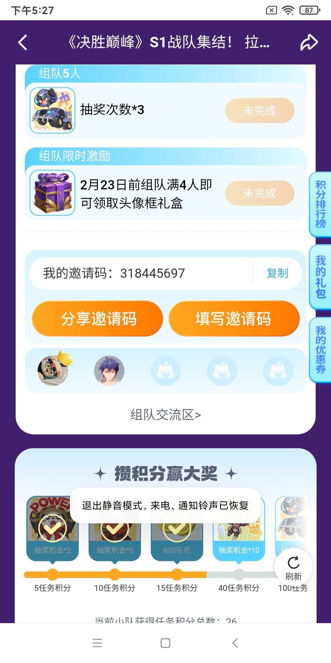 有人组队吗?318445697我的邀请码