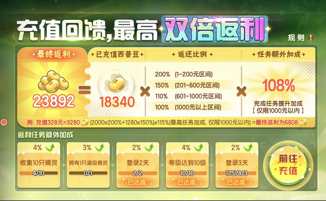 完成任务三:收集10只精灵,返利额外加成4%