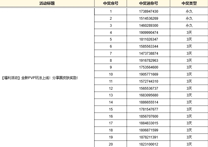 3、奖励将在活动结束后的30个工作日内发放至您的游戏邮箱,请注意查收;