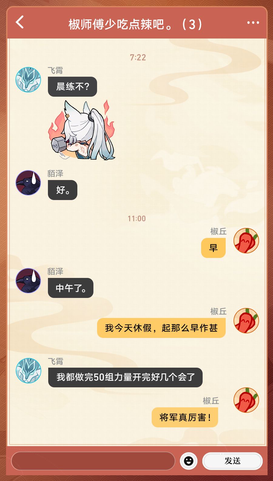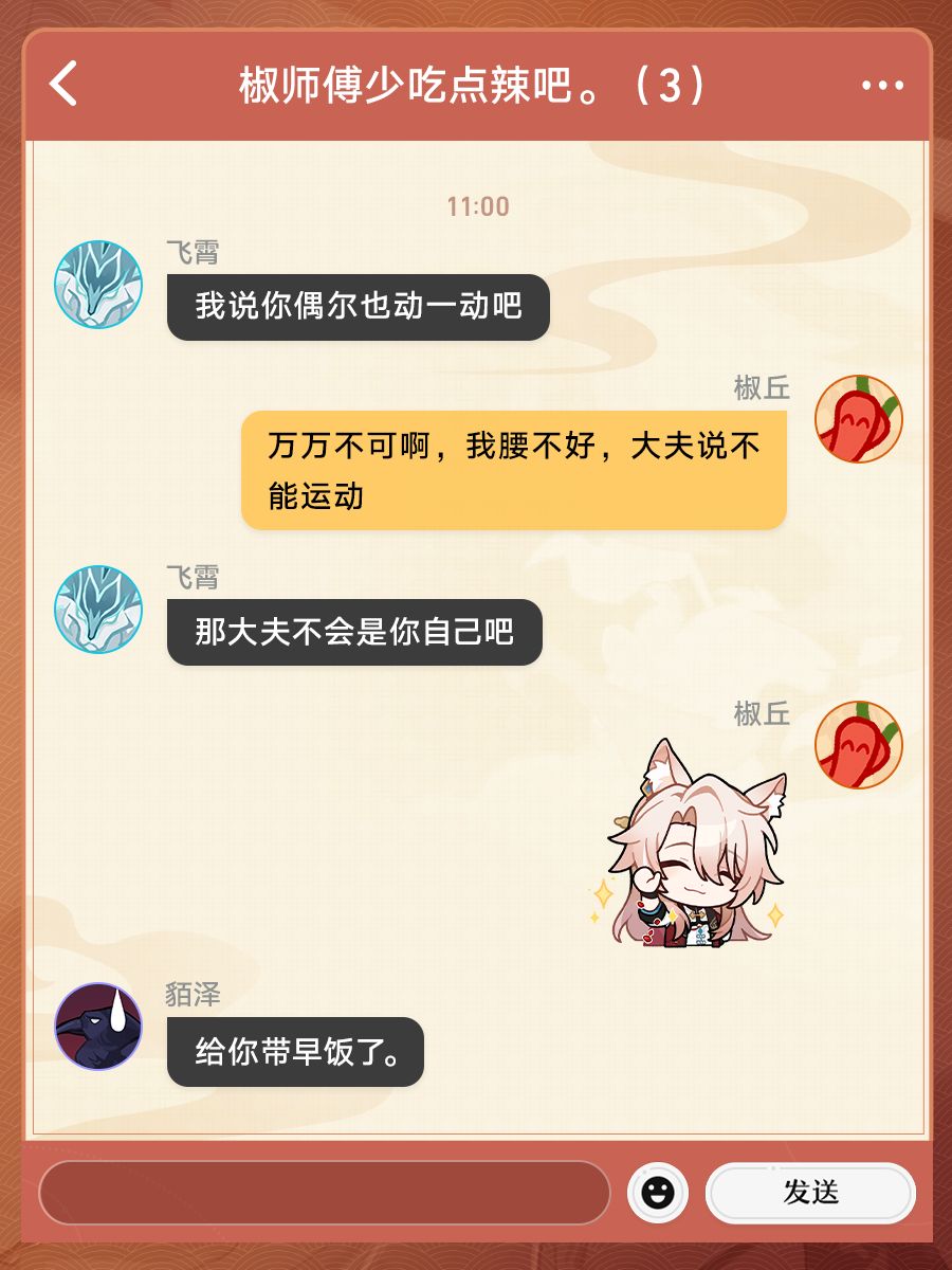 据「曜青」随军医助处的同僚们所言,狐人医士、将军幕僚椒丘在回复手机消息时,尽管仍是一如往常的笑面,那笑中仿佛有层次,时而扶额苦笑,时而哑然失笑,时而露出恶作剧得逞般的坏笑...