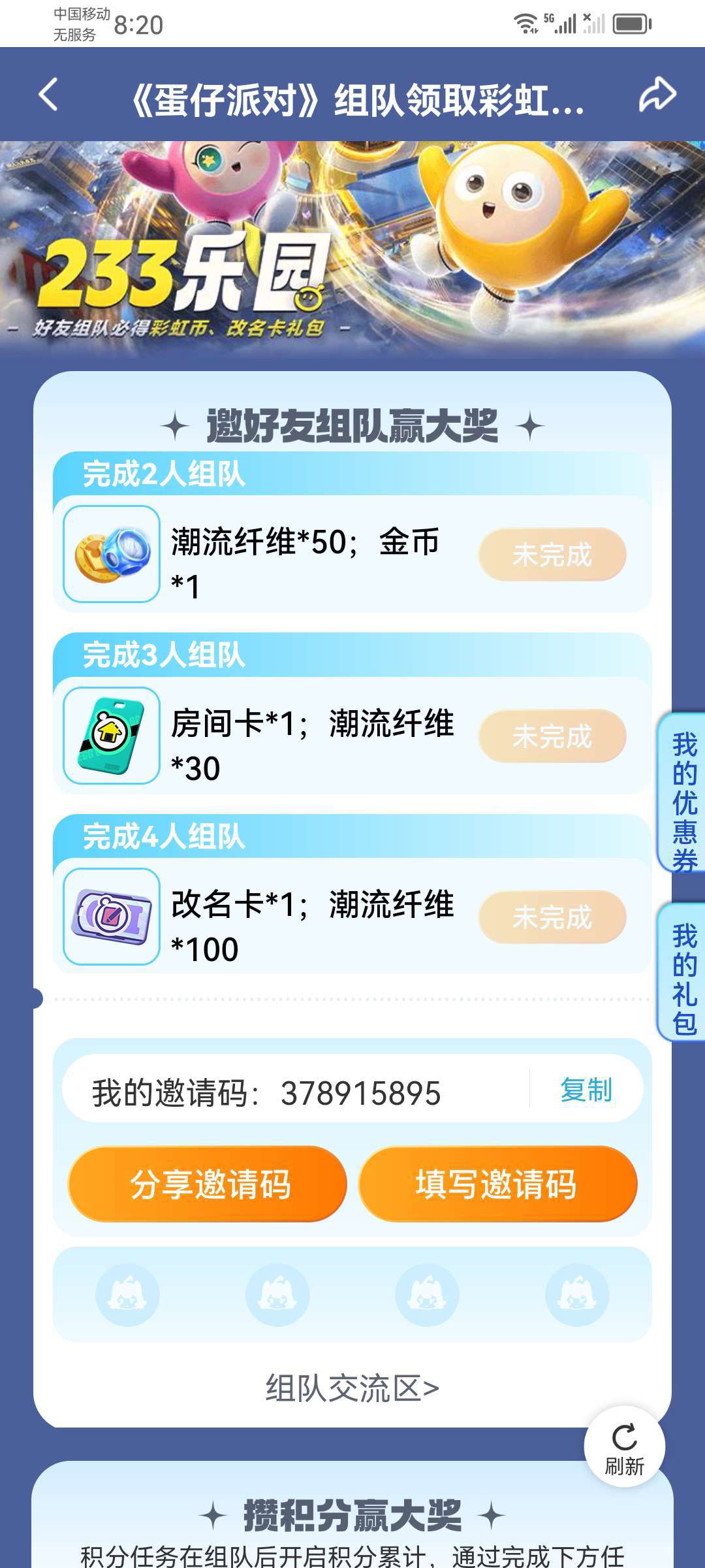 大家可以帮帮忙进我队伍吗😭