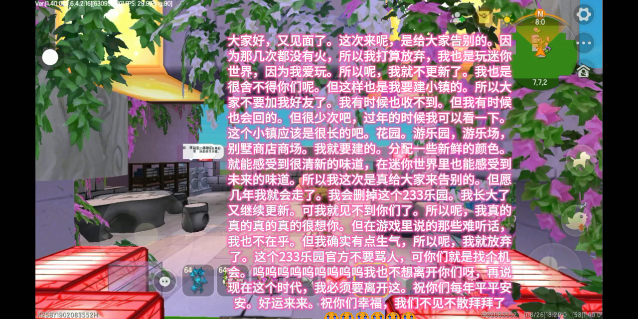 以后我玩迷你世界去了,请大家都不要加我好友。快开学了,所以我们不见不散。因为我要建图。好啦,拜拜